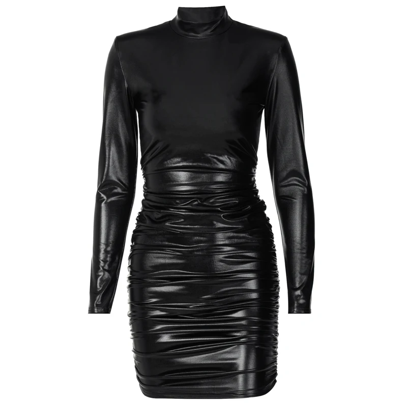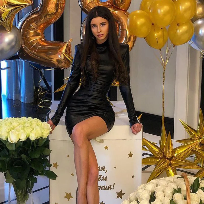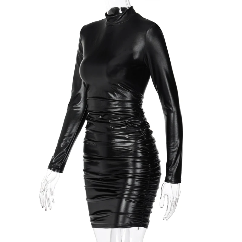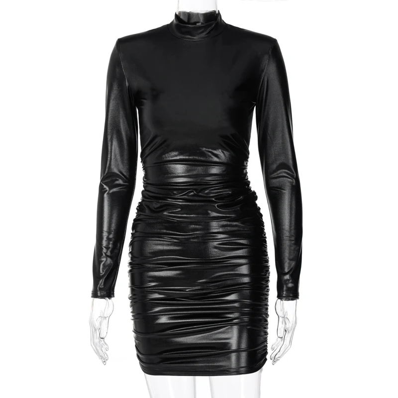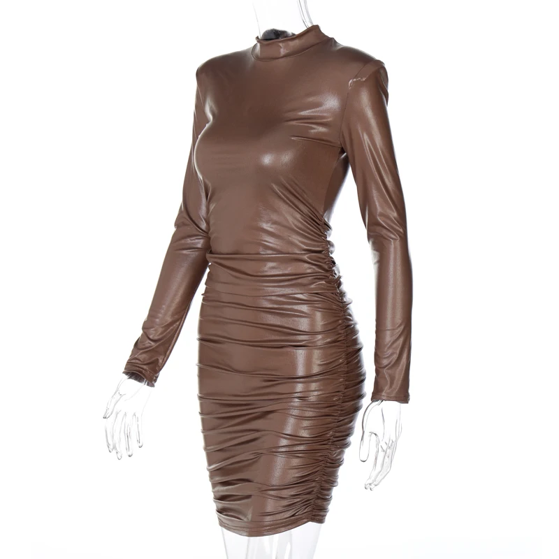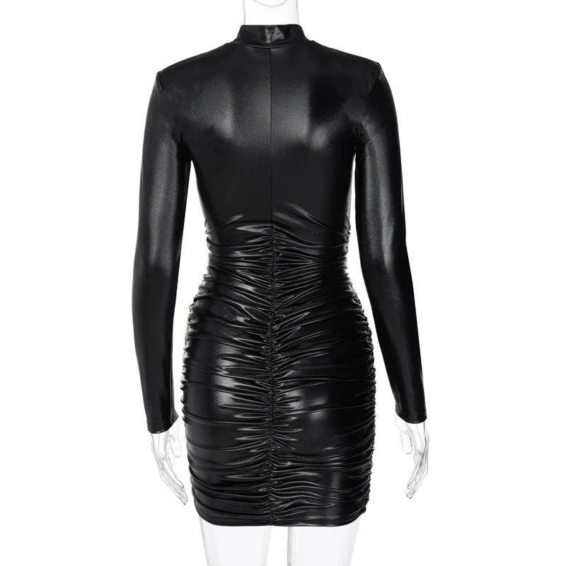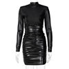 victoria’s vogue 2020 Long Sleeve Pu Leather Shoulder Padded Stacked Sexy Mini Dress Autumn Winter Women Fashion Streetwear Party Wear