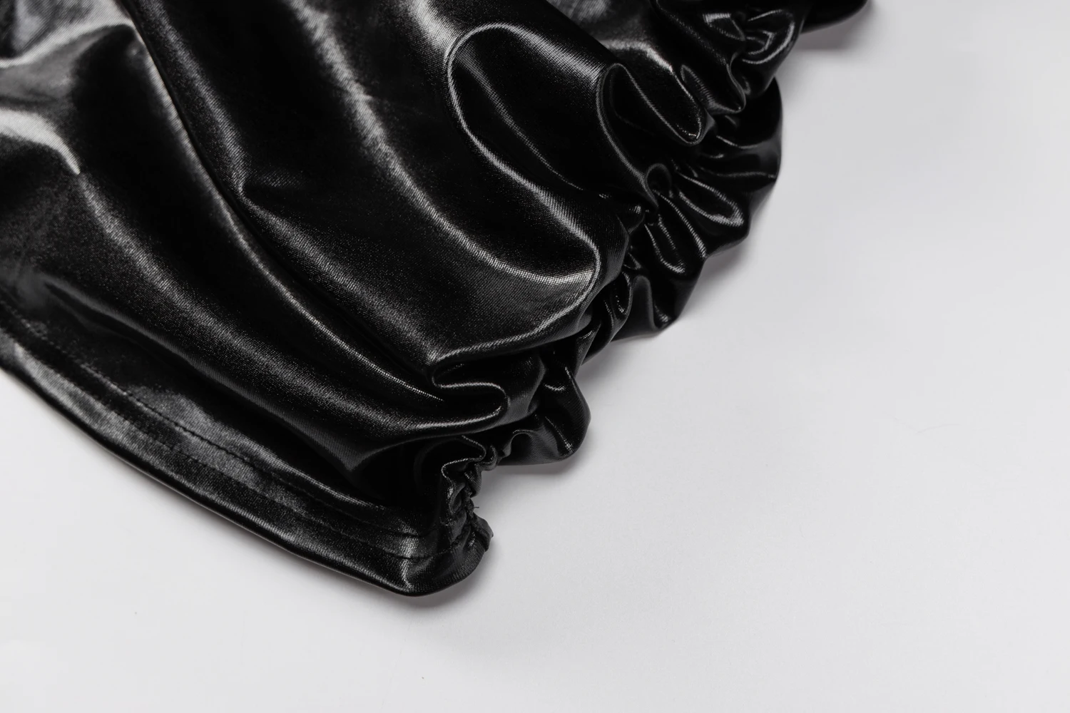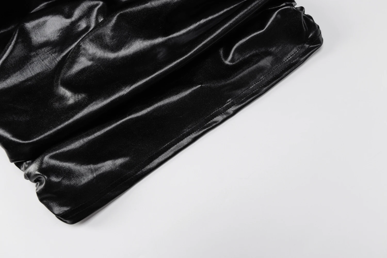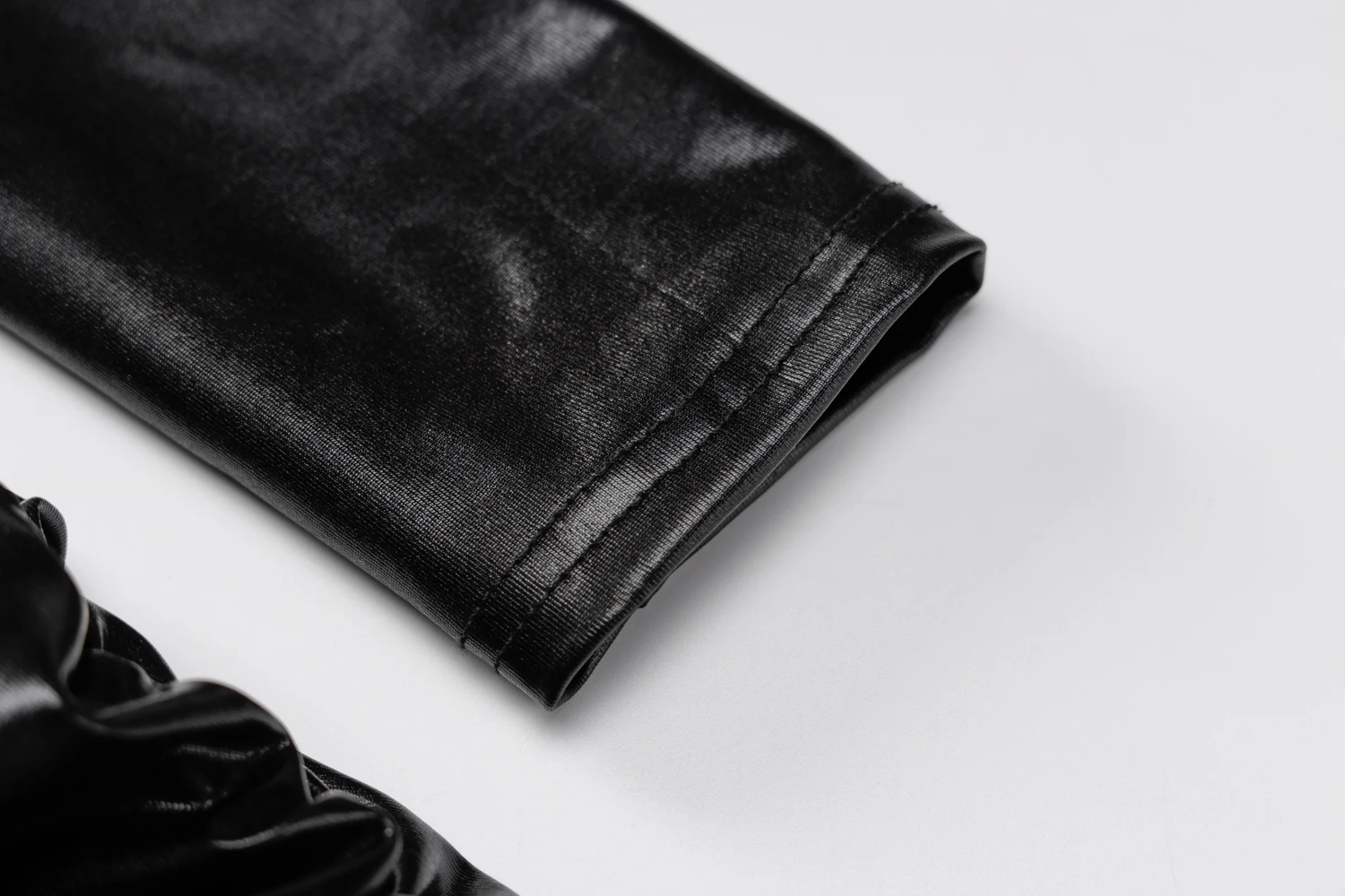victoria’s vogue 2020 Long Sleeve Pu Leather Shoulder Padded Stacked Sexy Mini Dress Autumn Winter Women Fashion Streetwear Party Wear