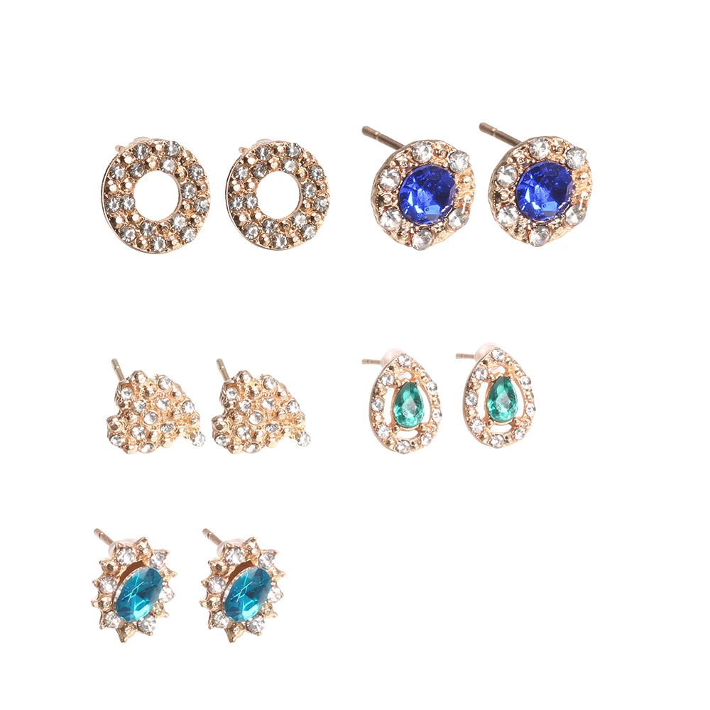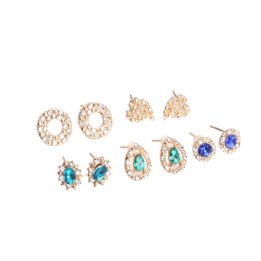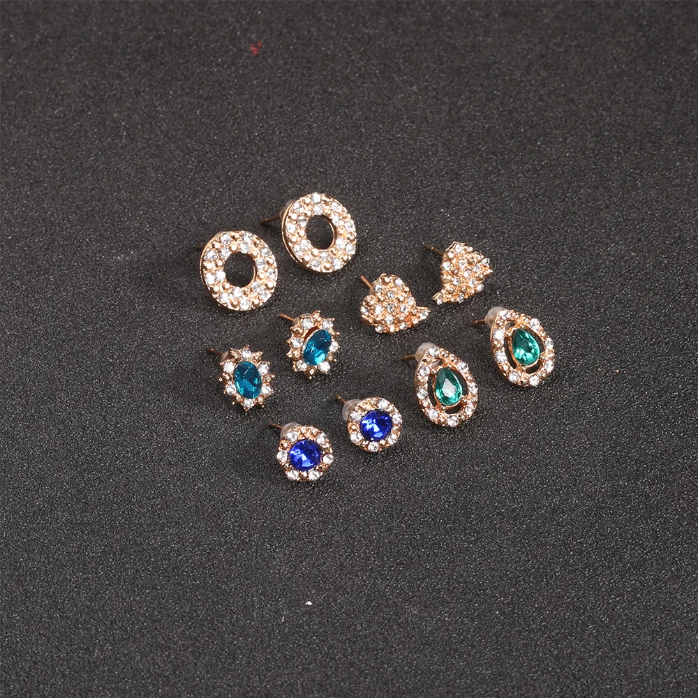 victoria’s vogue 2021 Blue Green Crystal Water Drop Leaves Flower Geometry Earring Set For Women Fashion New Vintage Earrings Jewelry Gift