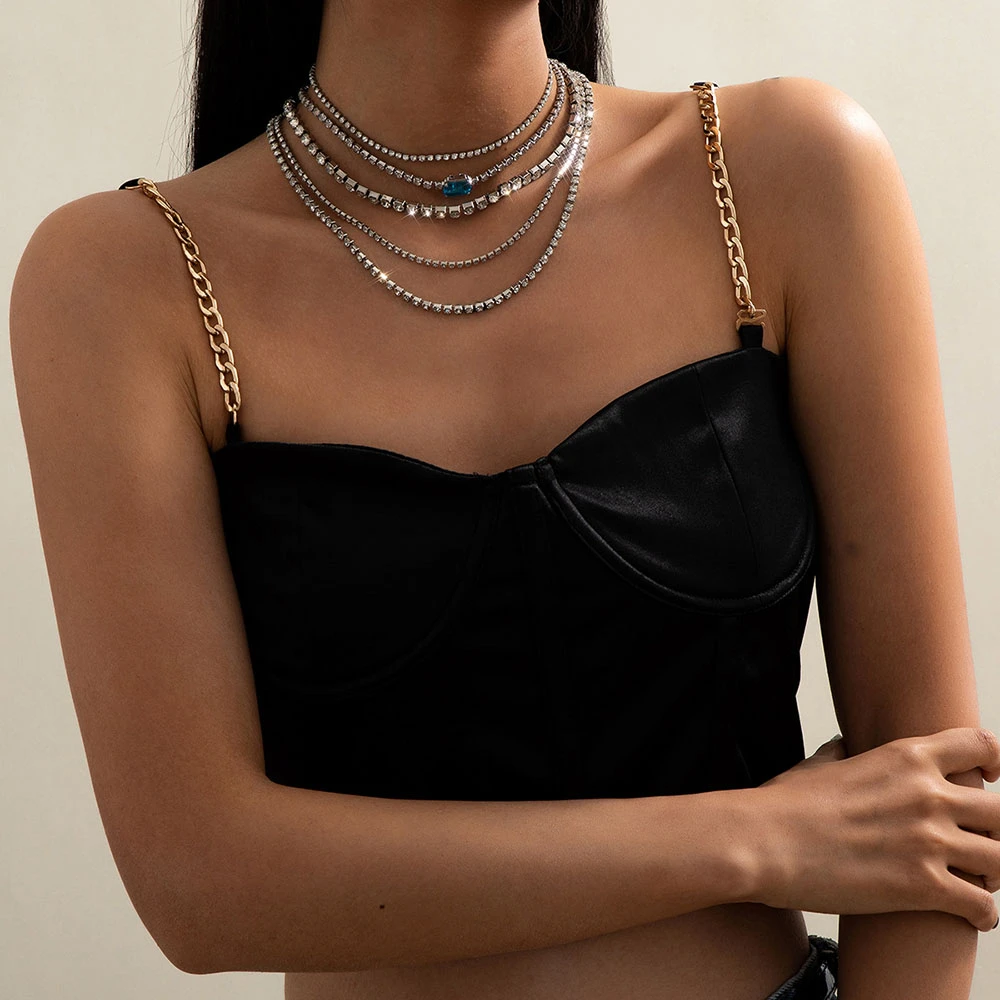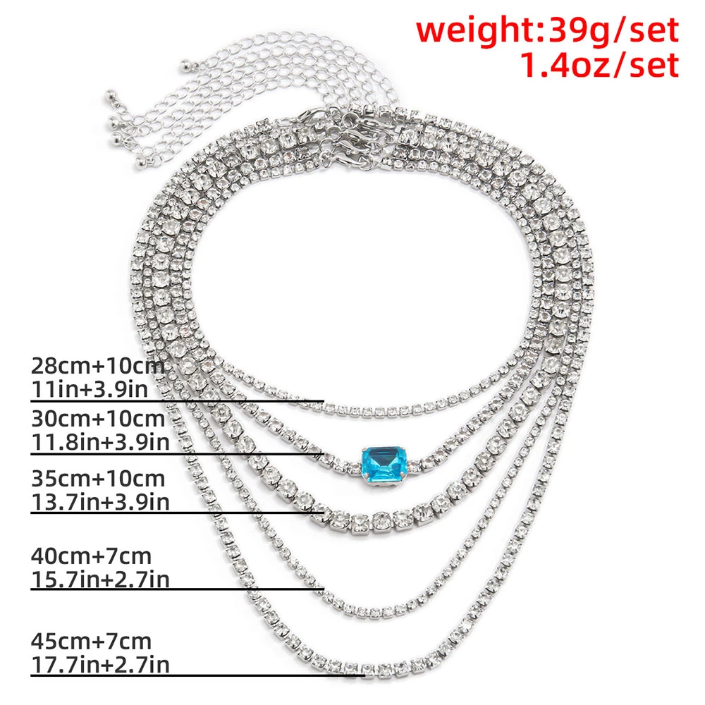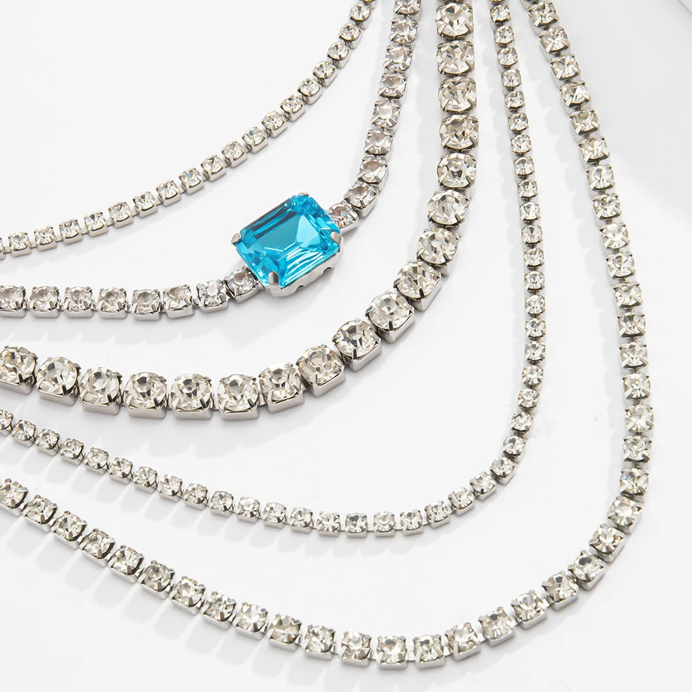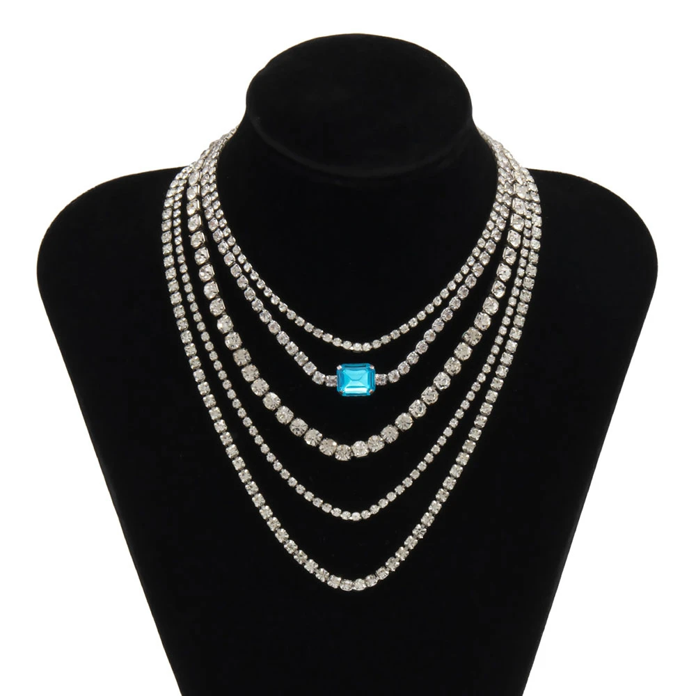 Victoria’s Vogue 2021 Fashion Multilevel Geometric Silver Color Square Purple Crystal Chain Necklace For Women Vintage Female Collar Jewely Gift