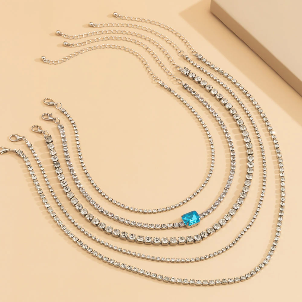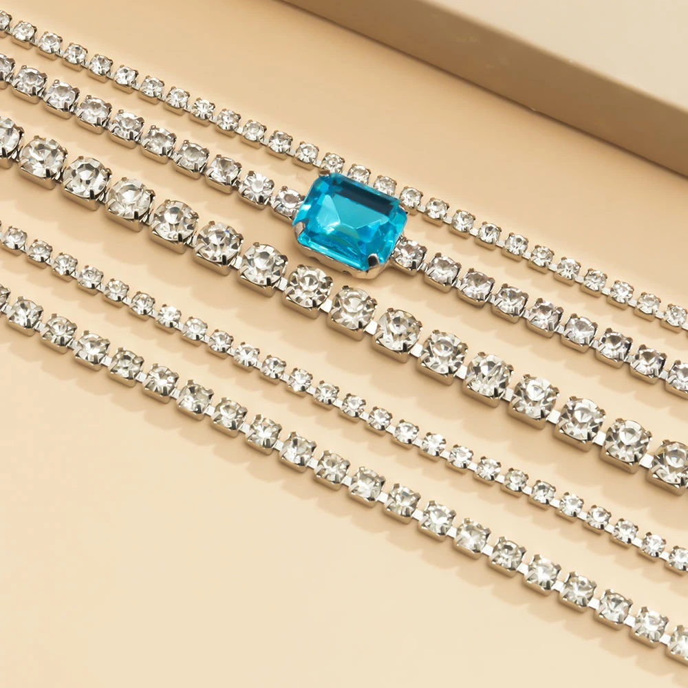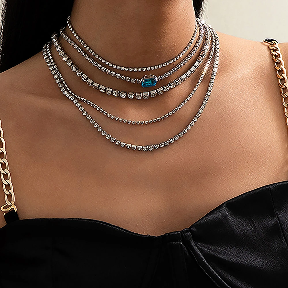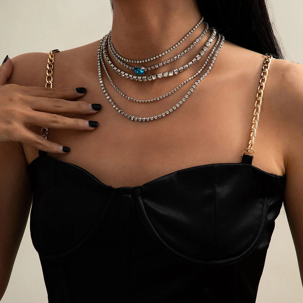 Victoria’s Vogue 2021 Fashion Multilevel Geometric Silver Color Square Purple Crystal Chain Necklace For Women Vintage Female Collar Jewely Gift