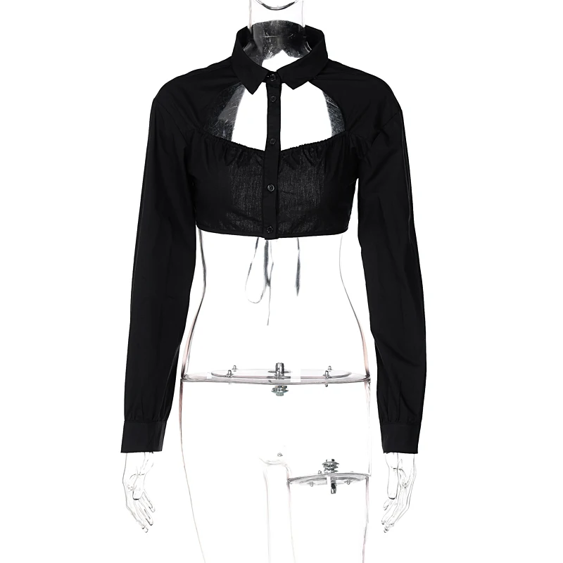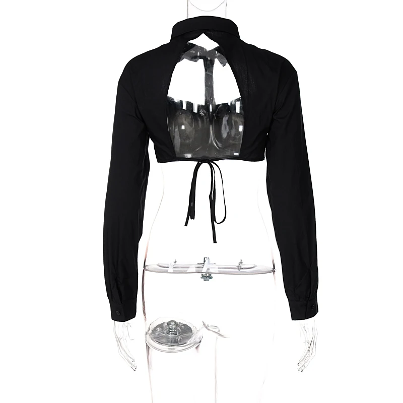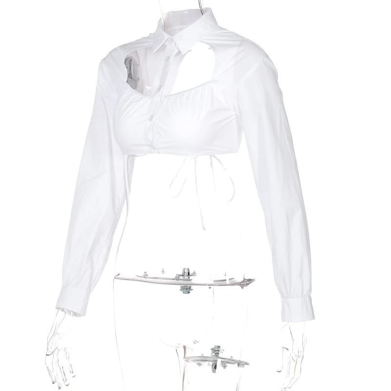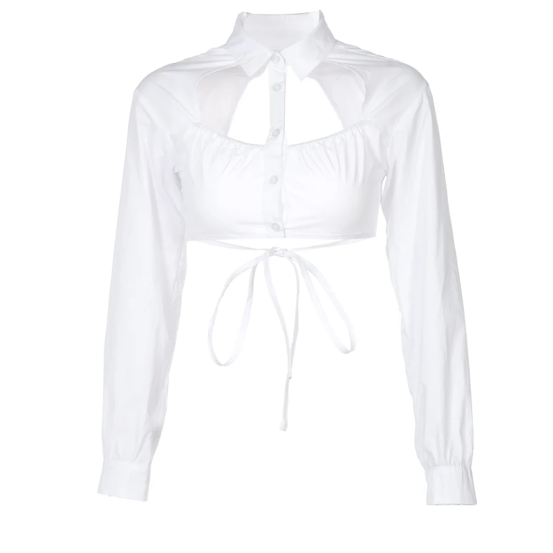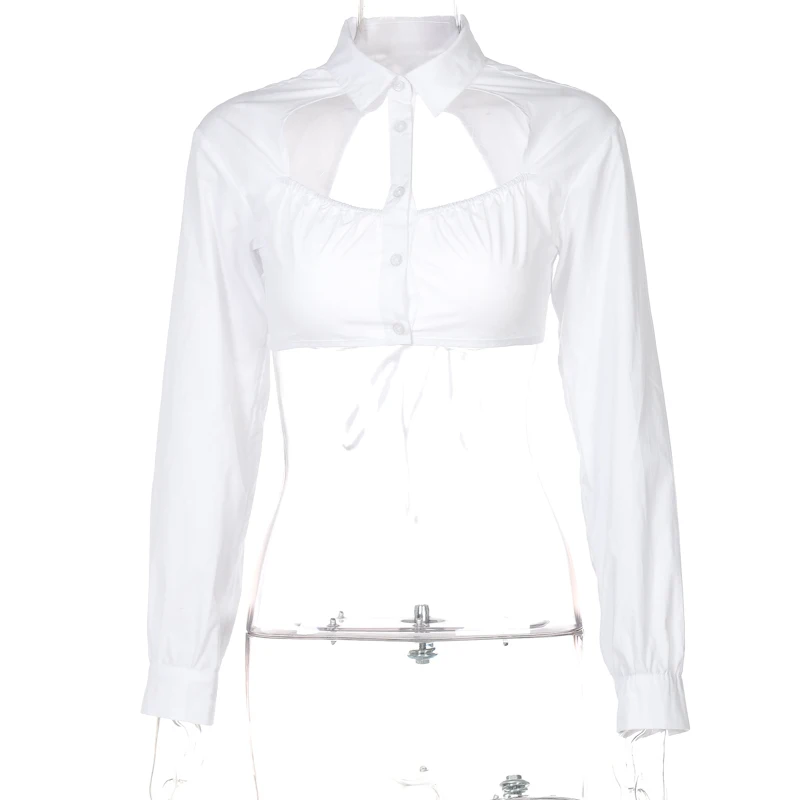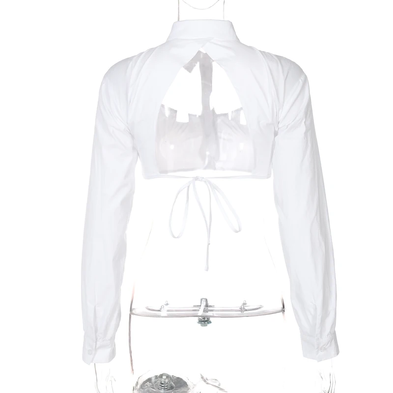 victoria’s vogue 2021 Long Sleeve Backless Single Breasted Sexy Crop Top Summer Women Fashion Streetwear Outfits Party White Shirt Y2K