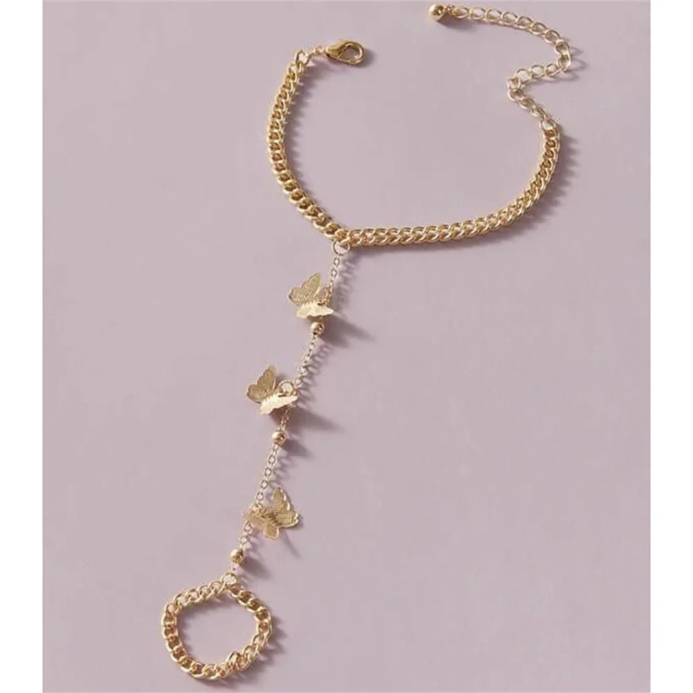 Victoria’s Vogue 2021 New Gold Simple Butterfly Finger Bracelet Fashion Bracelets For Women Boho Multilevel Vintage Geometric Jewelry Party Gift