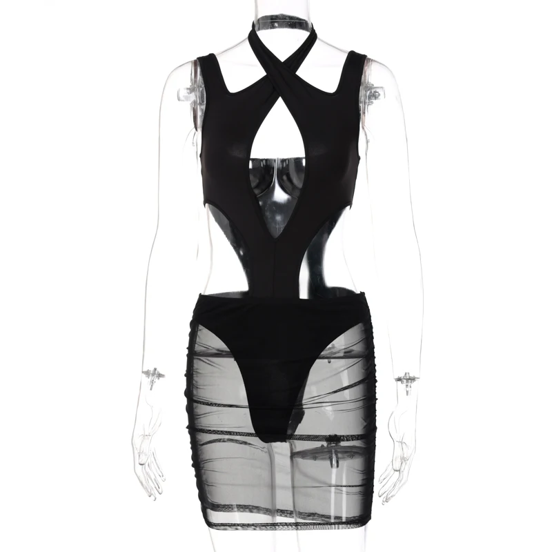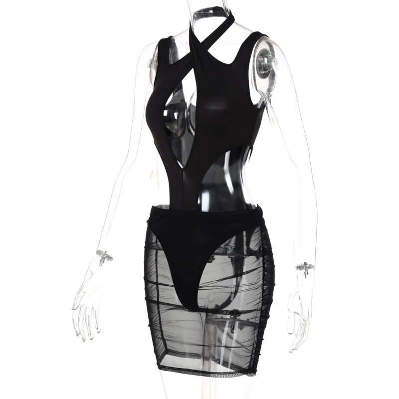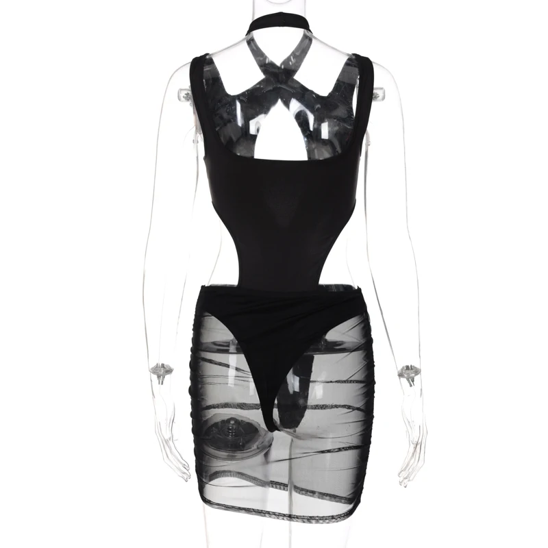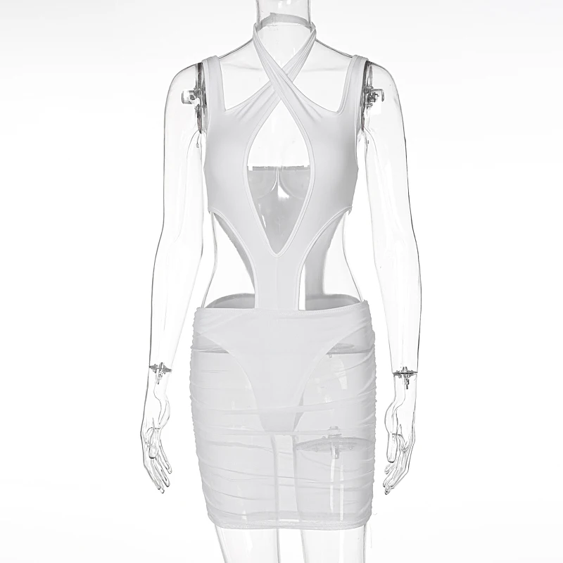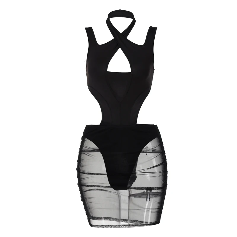 victoria’s vogue 2021 Short Sleeve Halter Hollow Out Hole Backless Bodycon Dress Summer Sexy Women Streetwear Y2K Party Casual Club