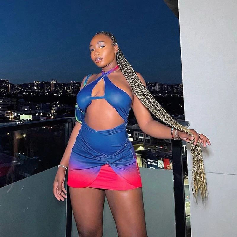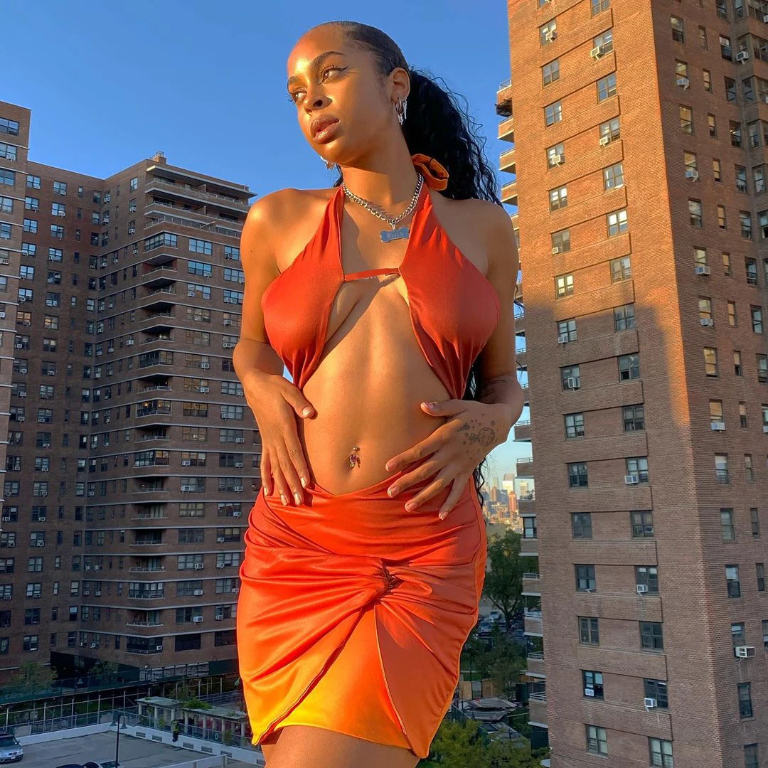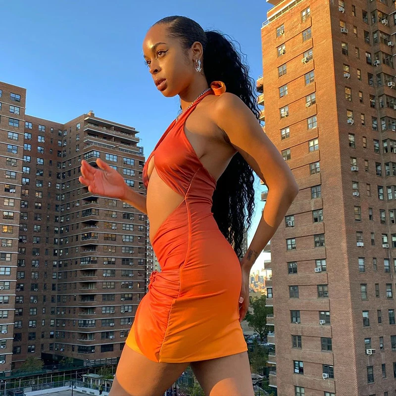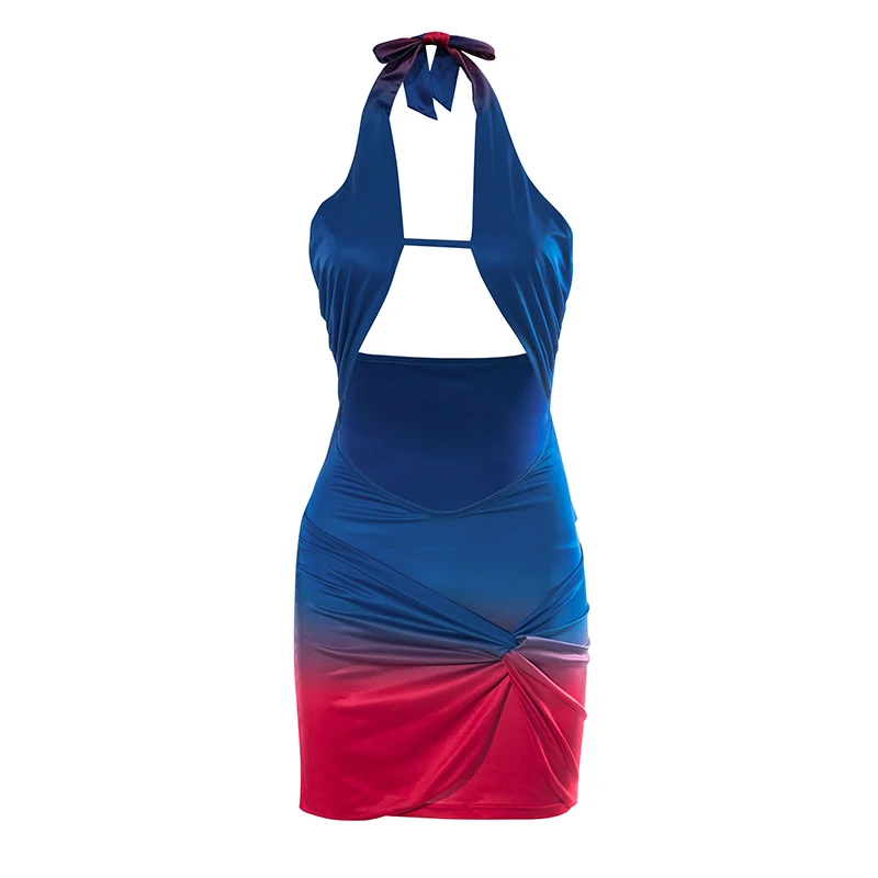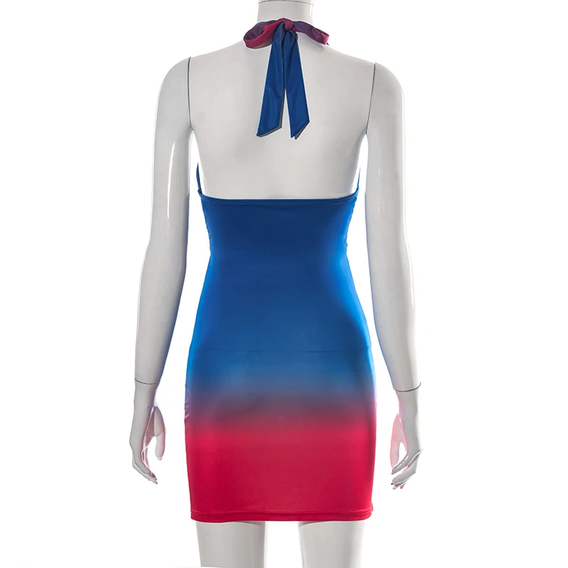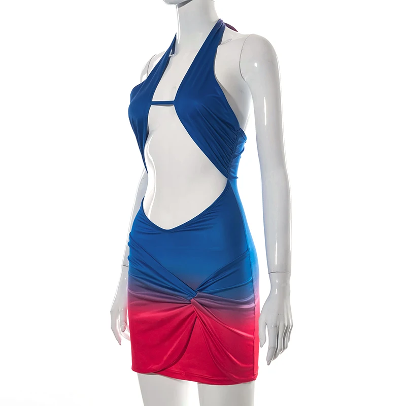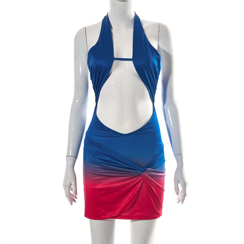 victoria’s vogue 2021 Sleeveless Halter Hollow Out Sexy Mini Dress Summer Women Bandage Y2K Tie Dye Club Clothing Streetwear