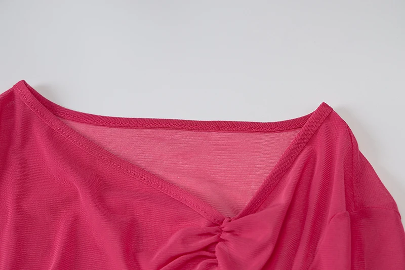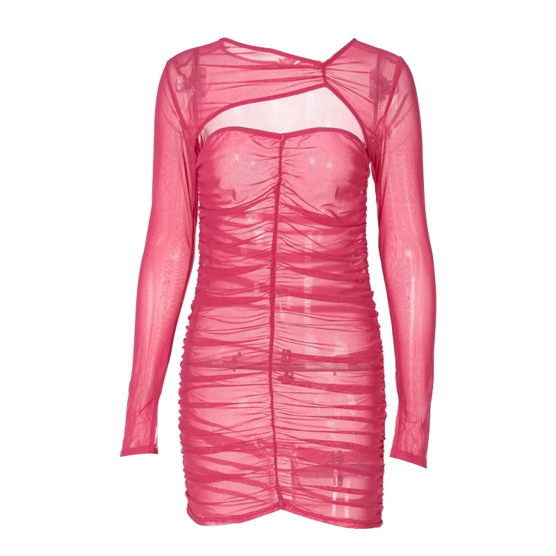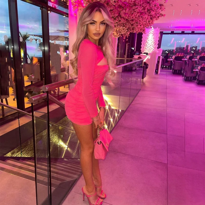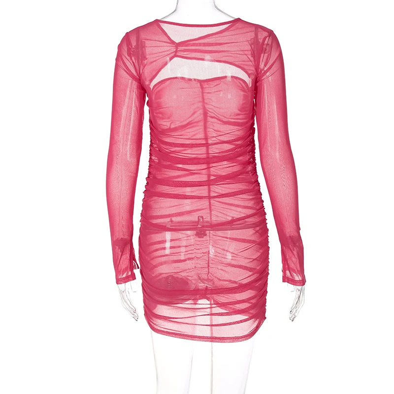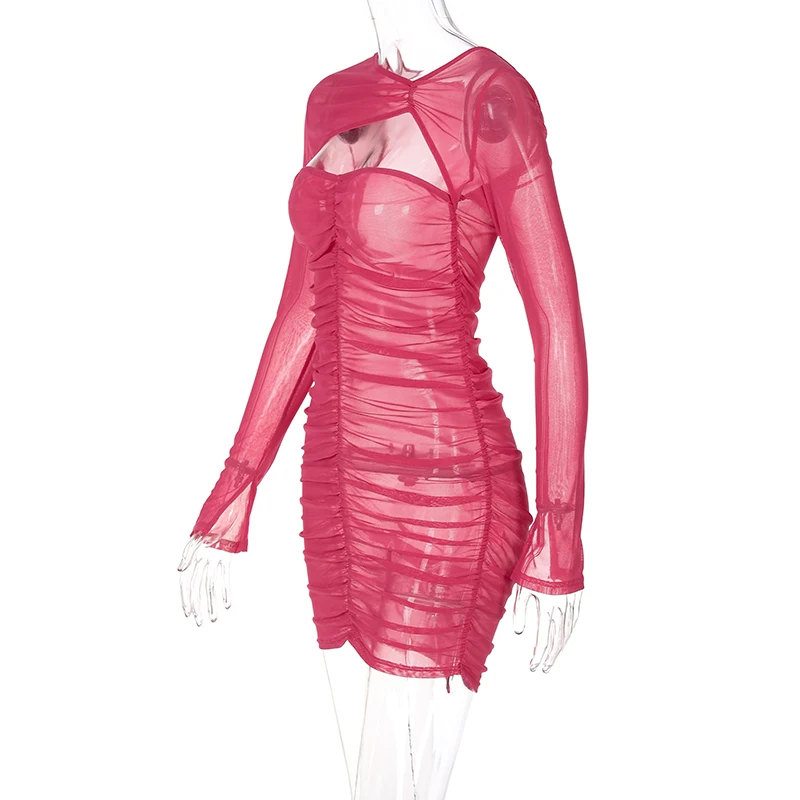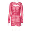victoria’s vogue 2021 Solid Mesh Long Sleeves Square Collar Crop Out Draped Sexy Mini Dress Fall Women Fashion Elegant Wear Party Club