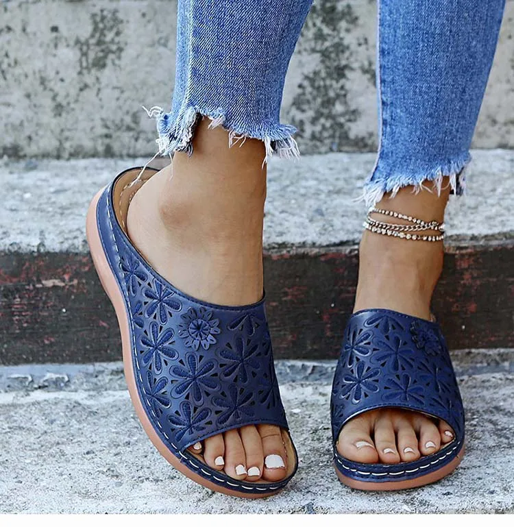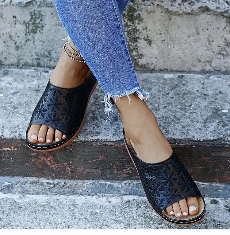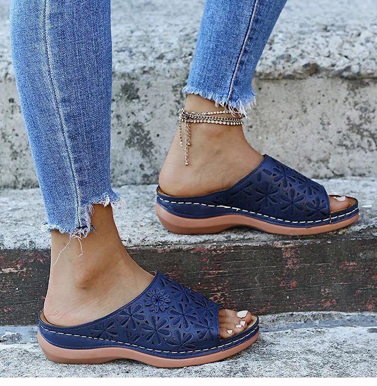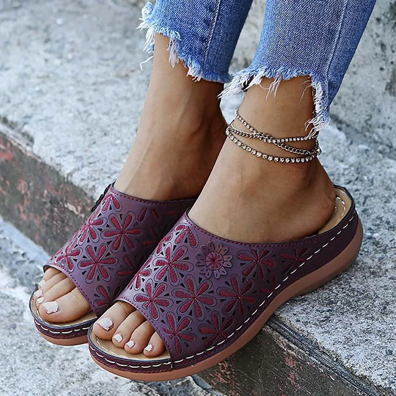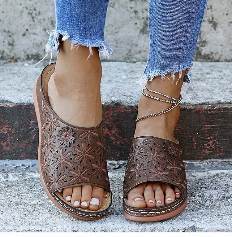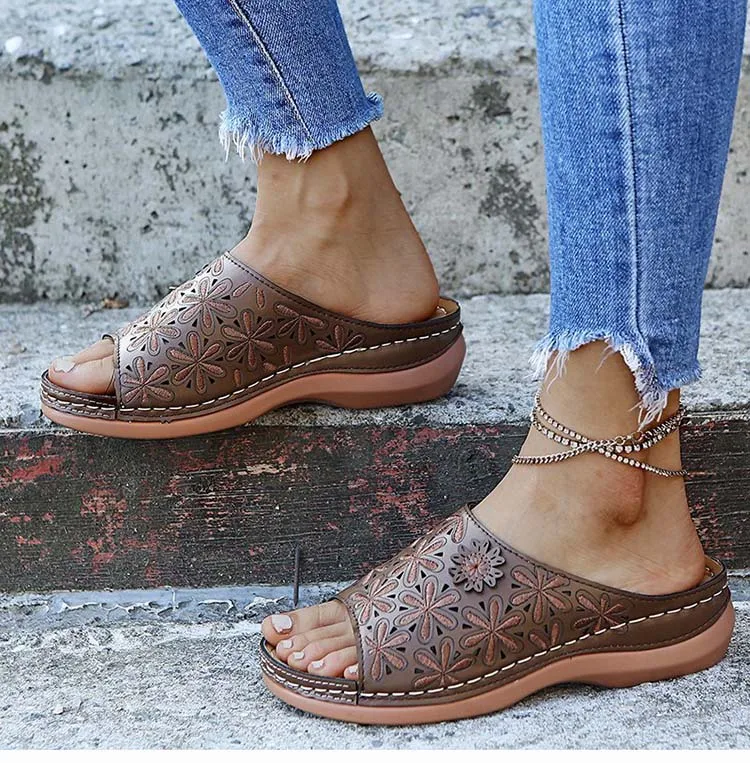 Victoria’s Vogue 2021 Women Sandal Leather Low Heels Woman Wedge Beach Shoes Flower Retro Platform Sandals Ladies Party Shoes Female