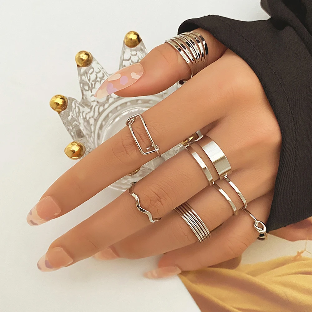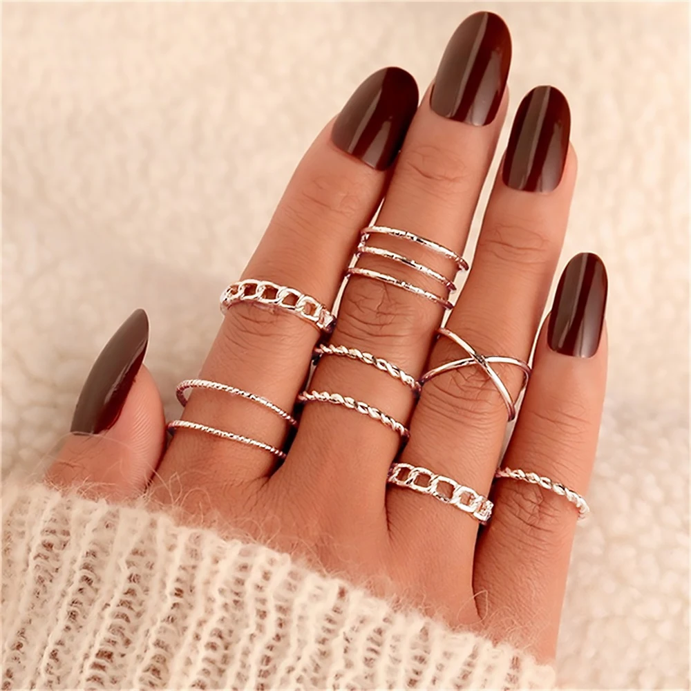 victoria’s vogue 2022 Bohemian Simple Metal Ring Sets Geometric Twist Rings Sets for Women Girl Wedding Jewelry
