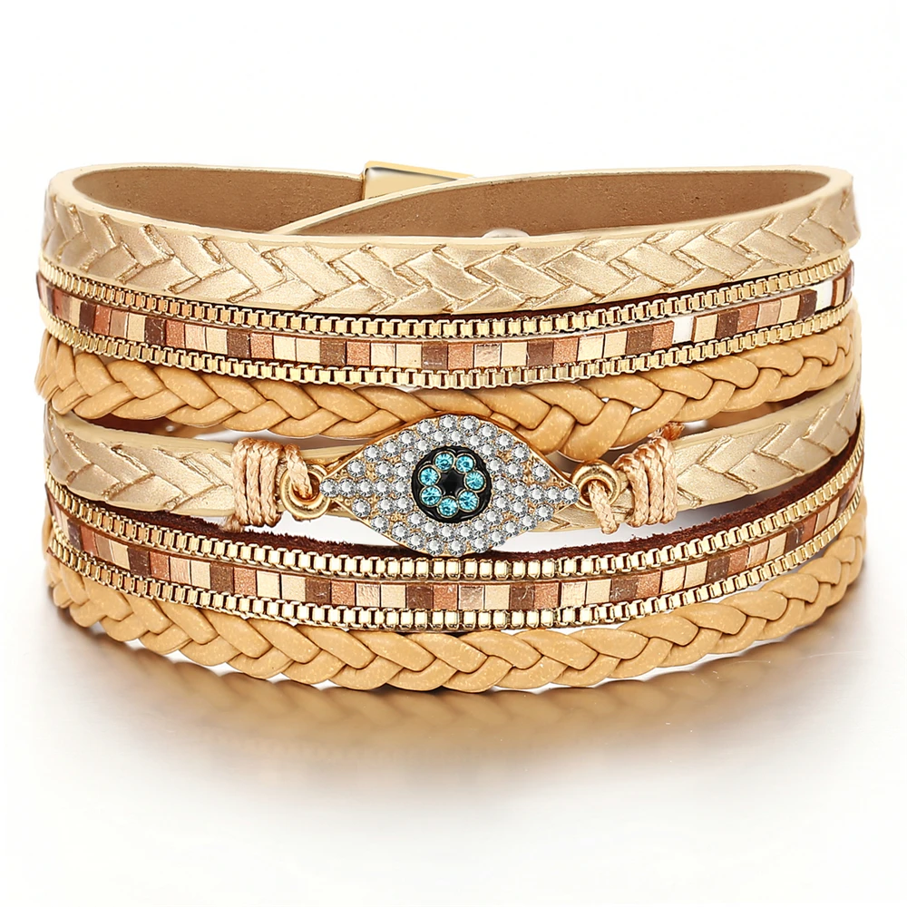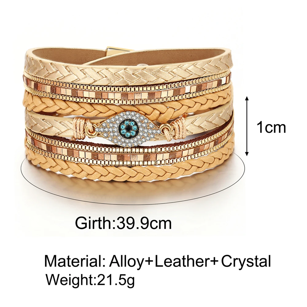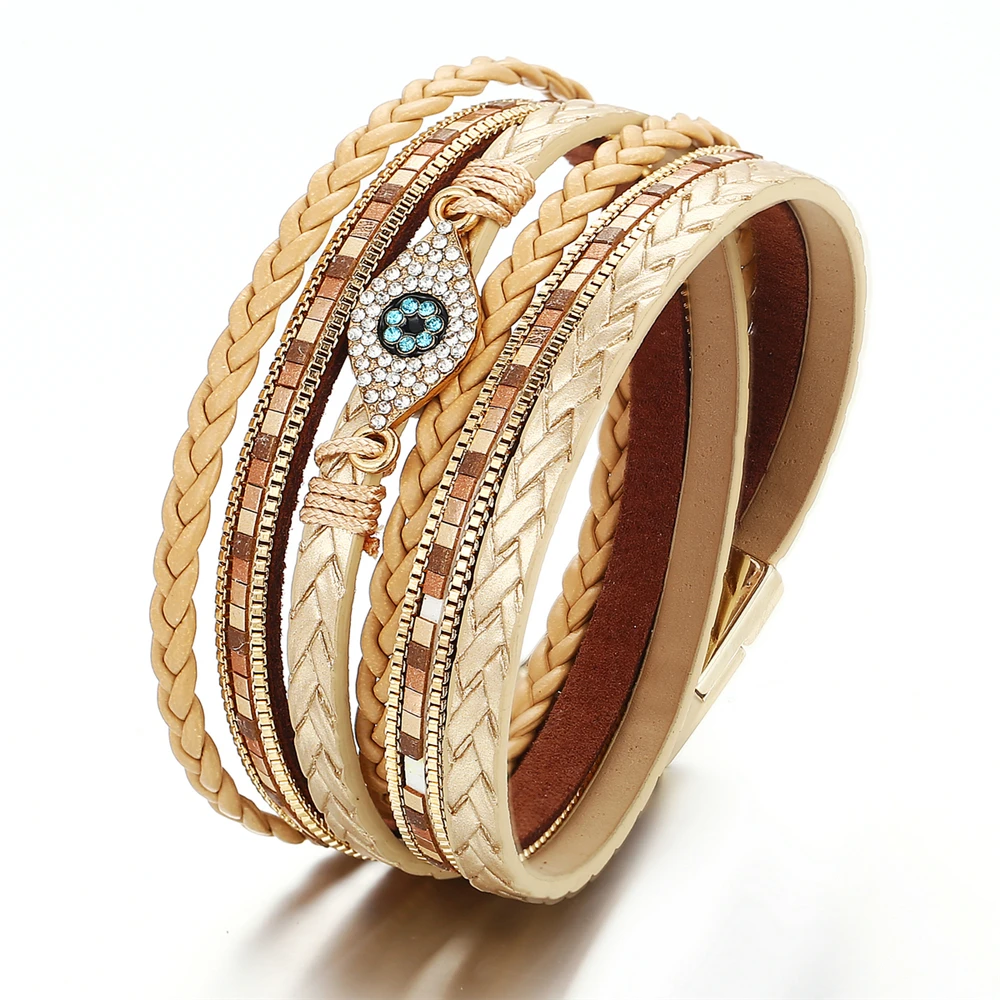 victoria’s vogue 2022 Boho Adjustable Multiple Layer Bracelets Bangles For Women Yellow Faux Leather Geometric Crystal Fashion Bracelet Jewelry