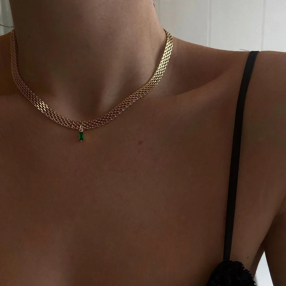 victoria’s vogue 2022 Classic Snake Gold Cube Chain Roll Necklace  For Women Classic Wide Hollow Crystal Pendant Magic Bitcoin Necklaces Jewelry