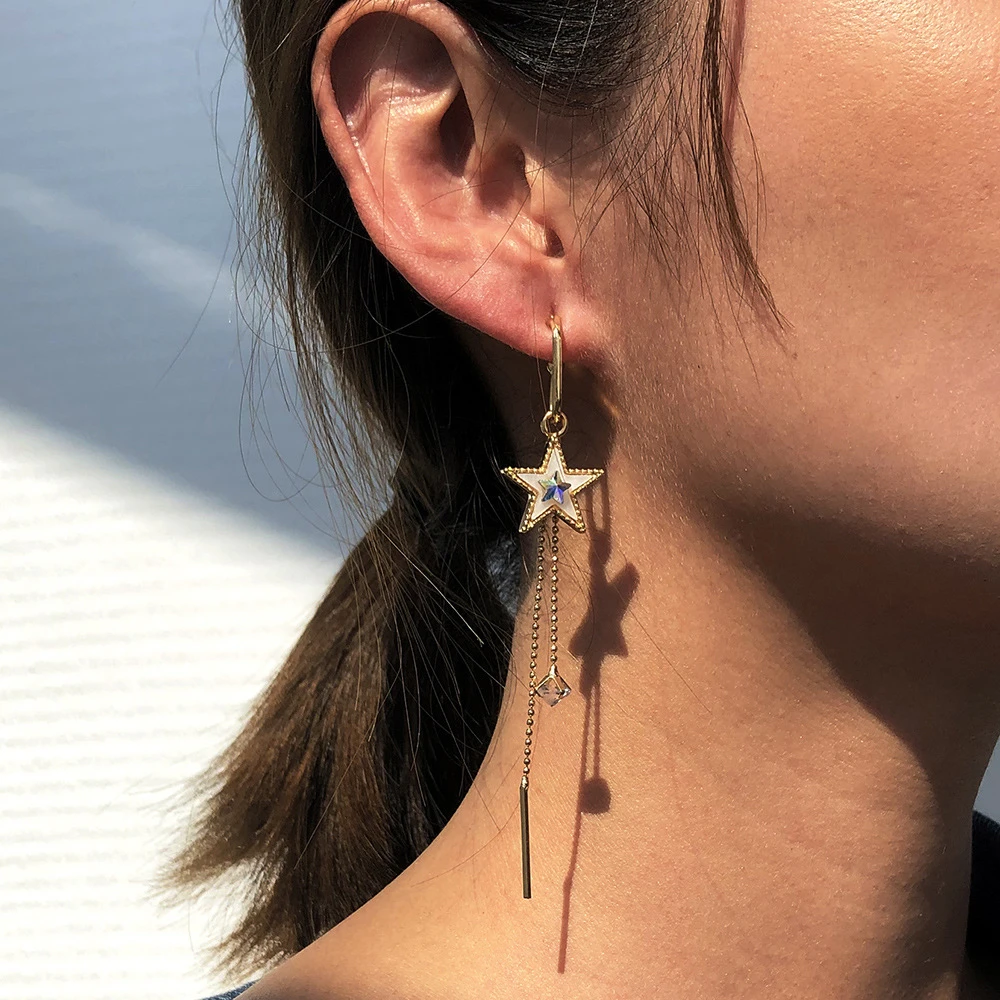 victoria’s vogue 2022 Fashion Geometric Gold Delicate Asymmetrical Earring For Women New Crystal Star Earth Pendant Earrings Jewelry