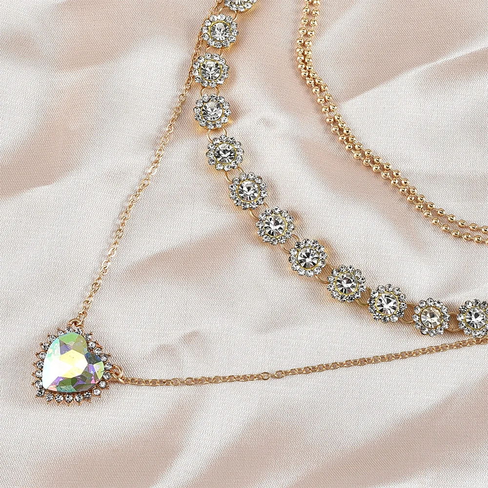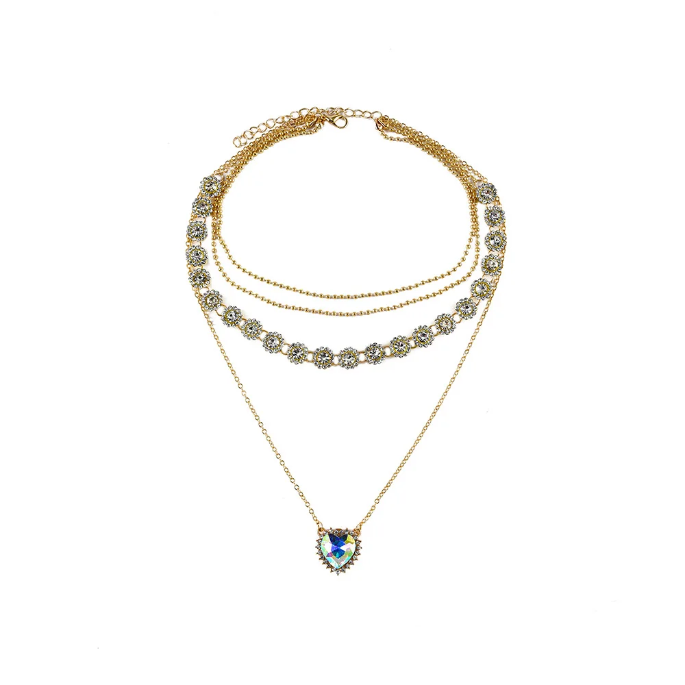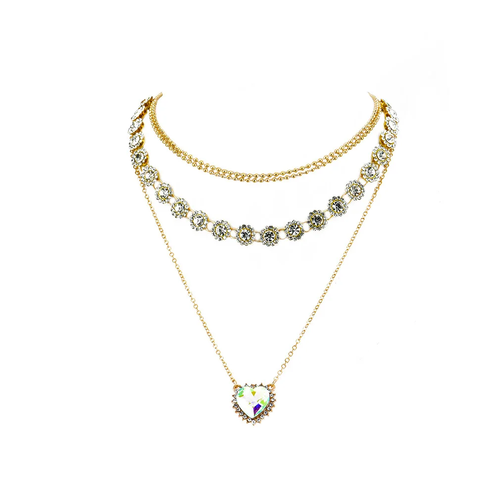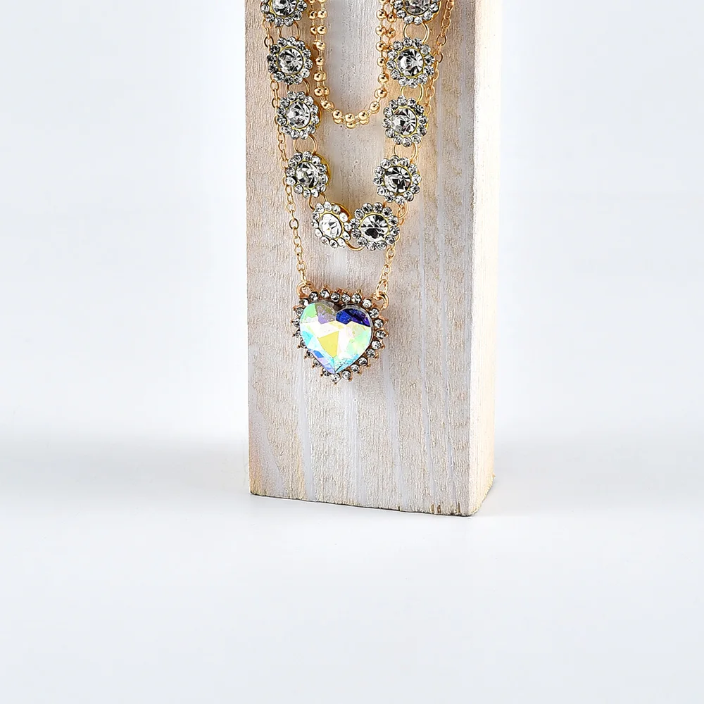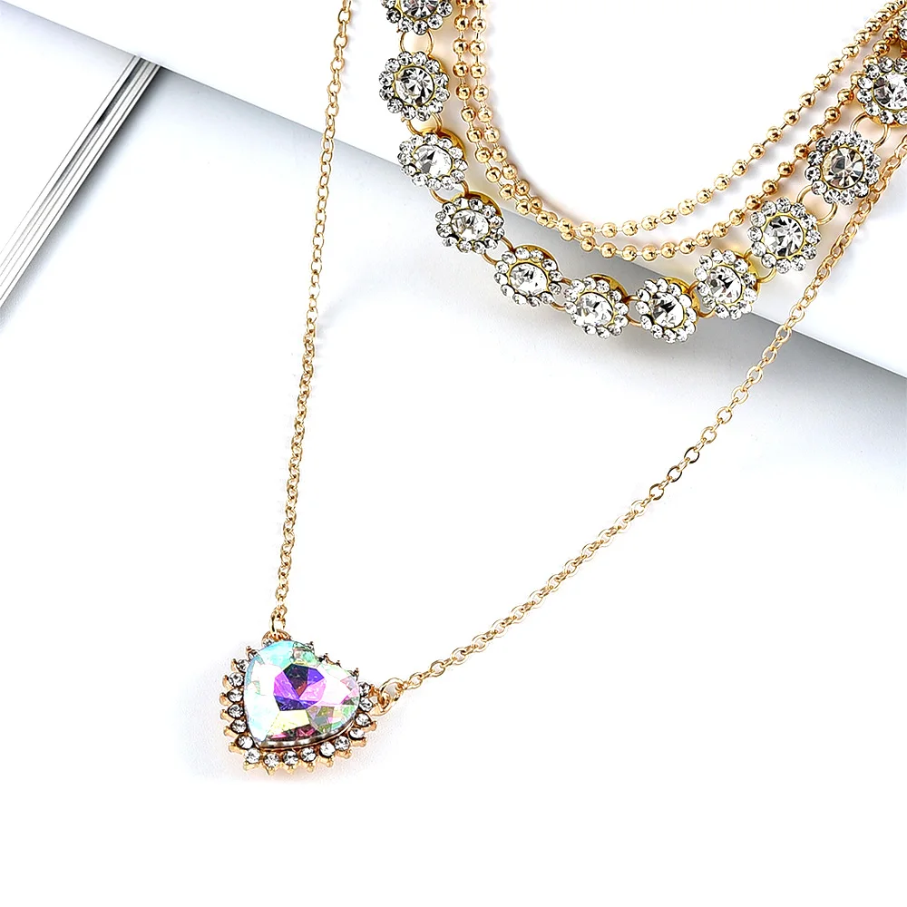 victoria’s vogue 2022 Fashion Gold Crystal Pendant Necklaces For Women Necklace New Heart Shaped Flowers Multi Level Female Boho Vintage Jewelry