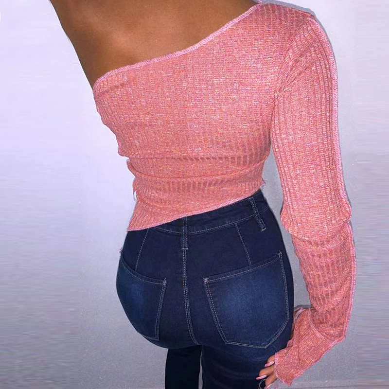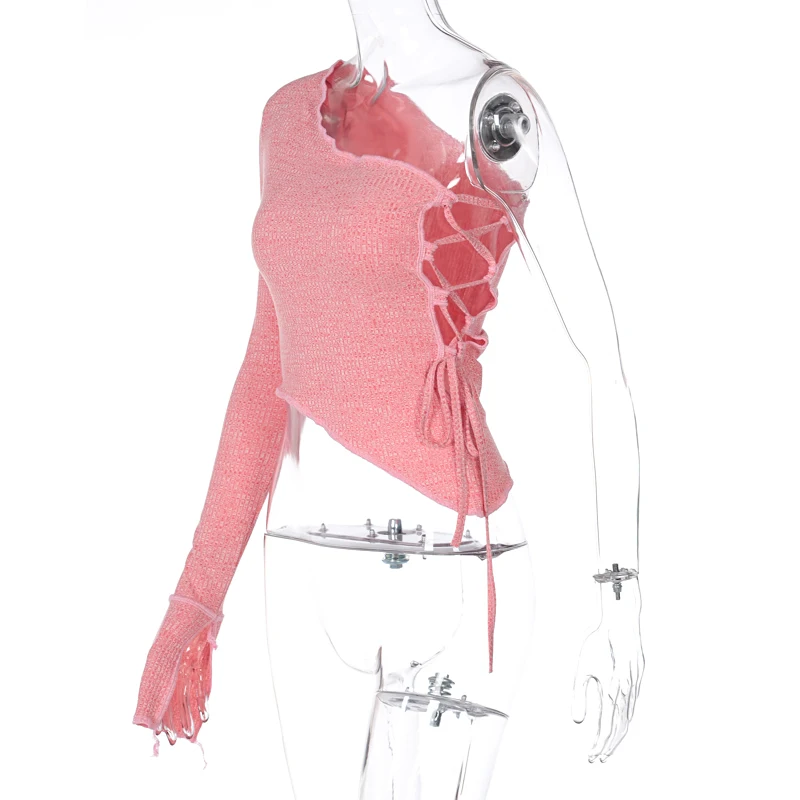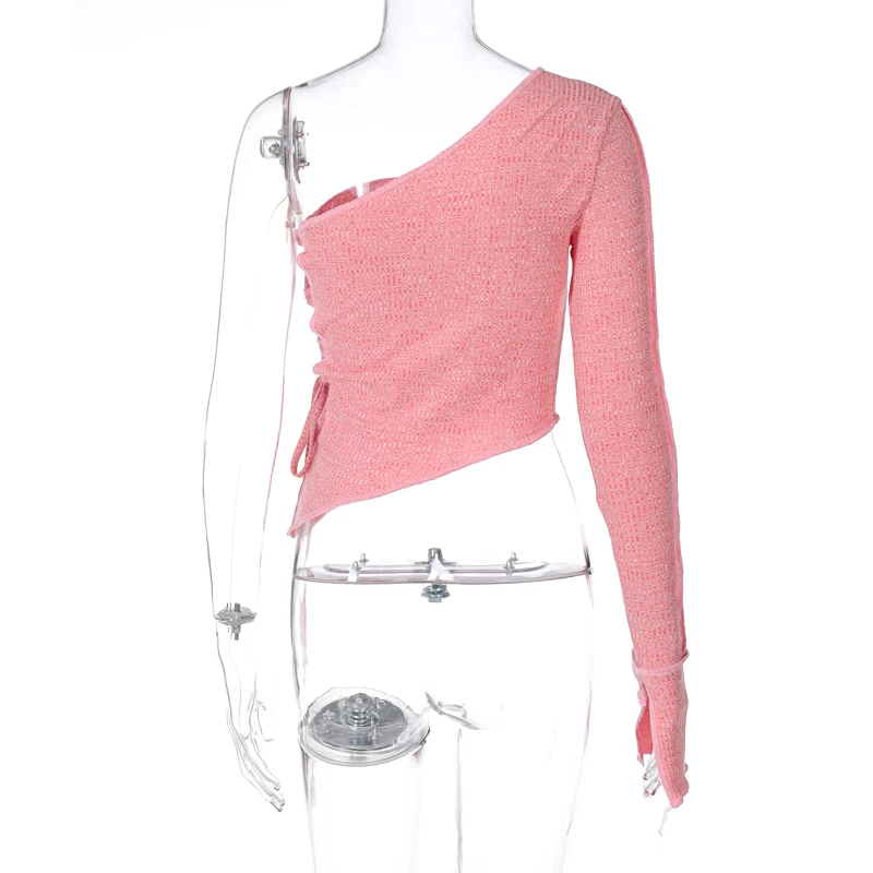 victoria’s vogue 2022 Long Sleeve One-Shoulder Bandage Hollow Out Irregular Sexy Tshirt Top Autumn Winter Women Party Club Outfits