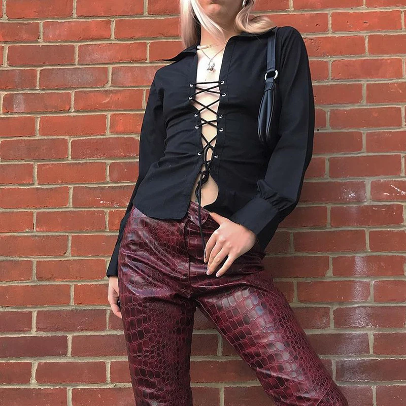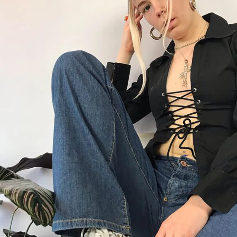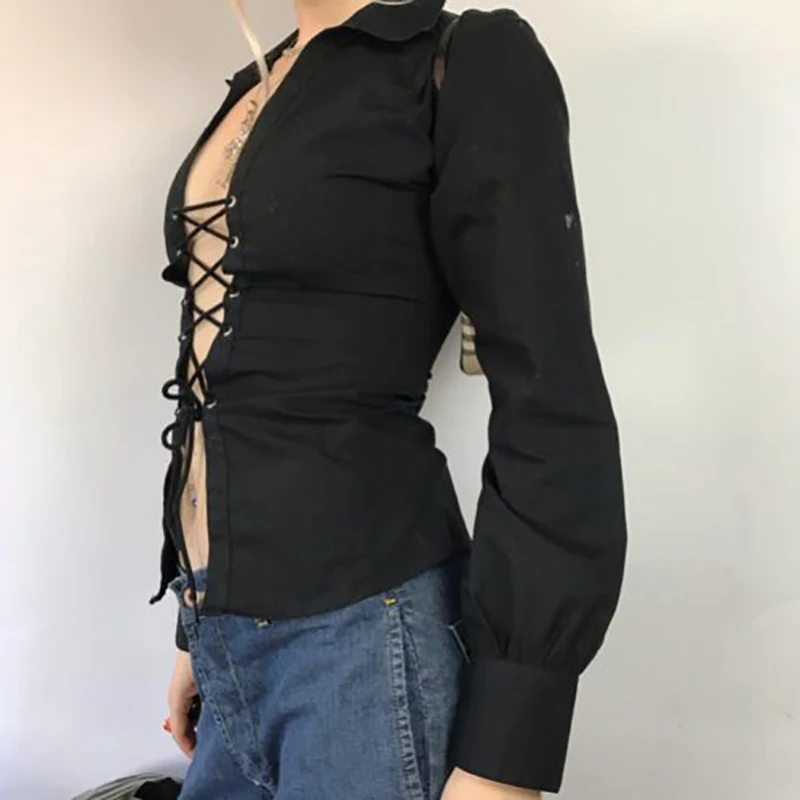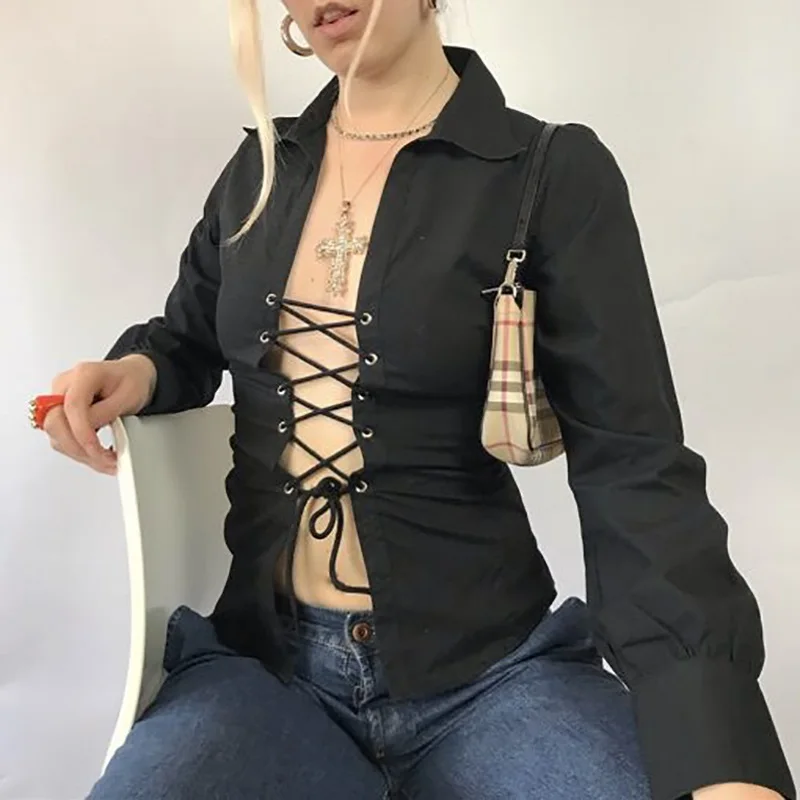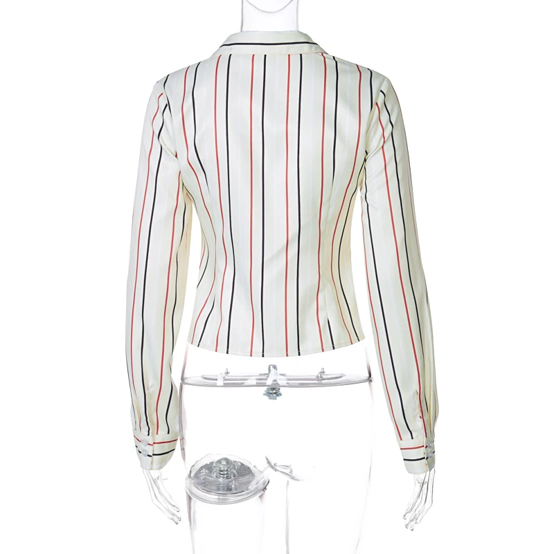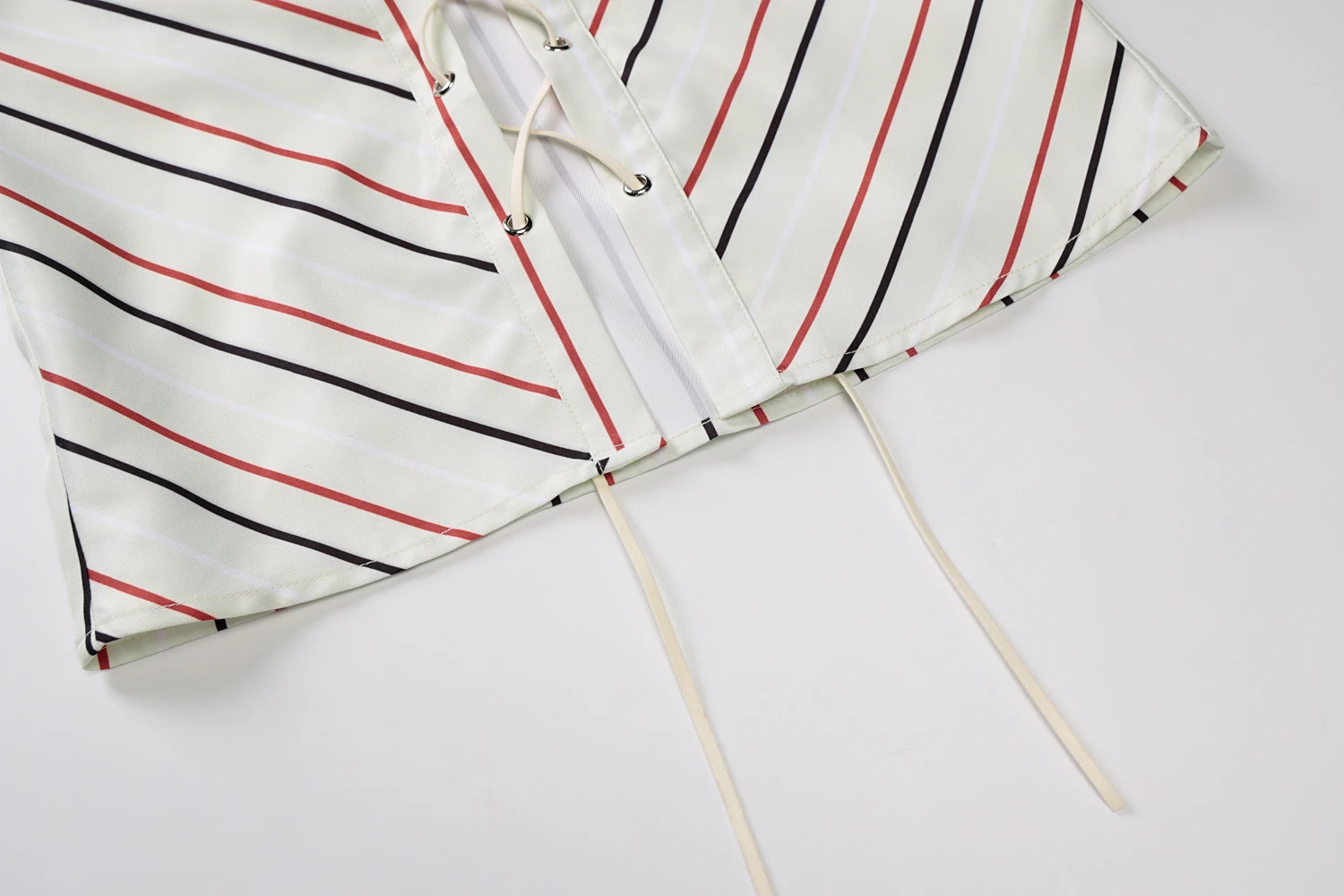 victoria’s vogue 2022 Long Sleeve Striped Bandage Tops Summer Women Fashion Vintage Tshirts Streetwear Tees