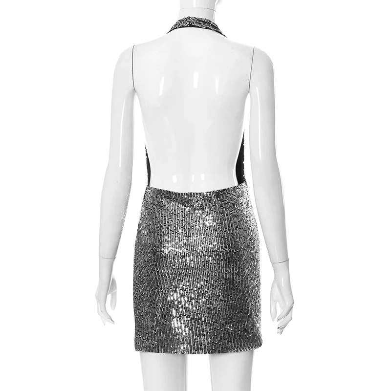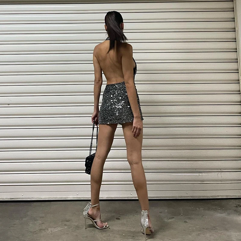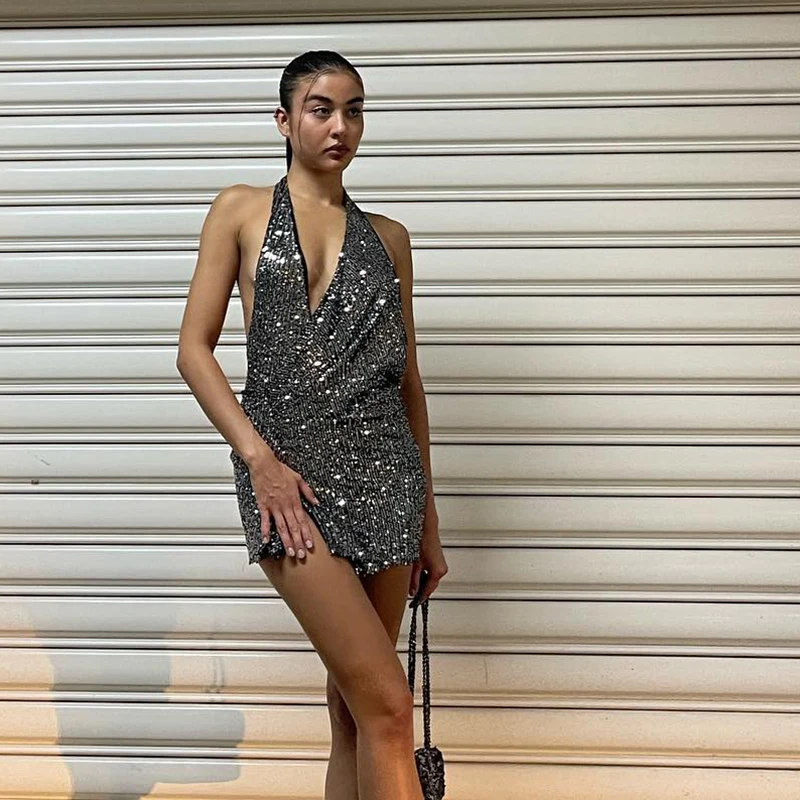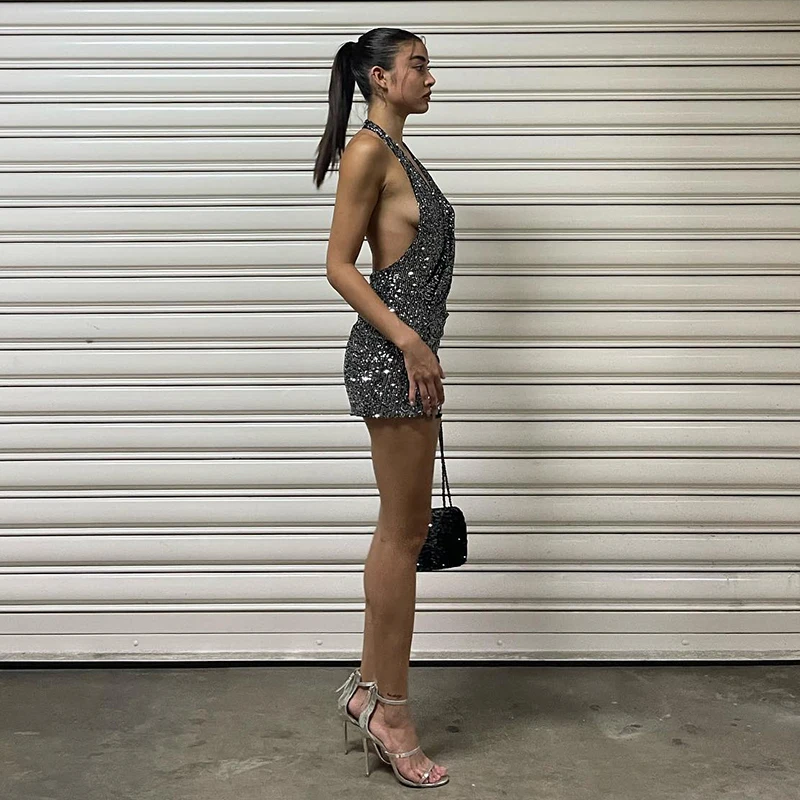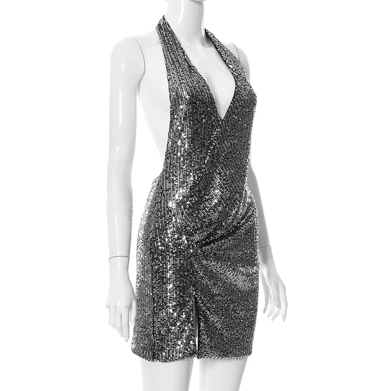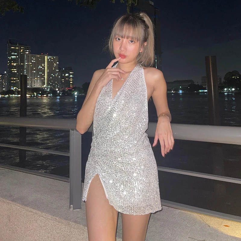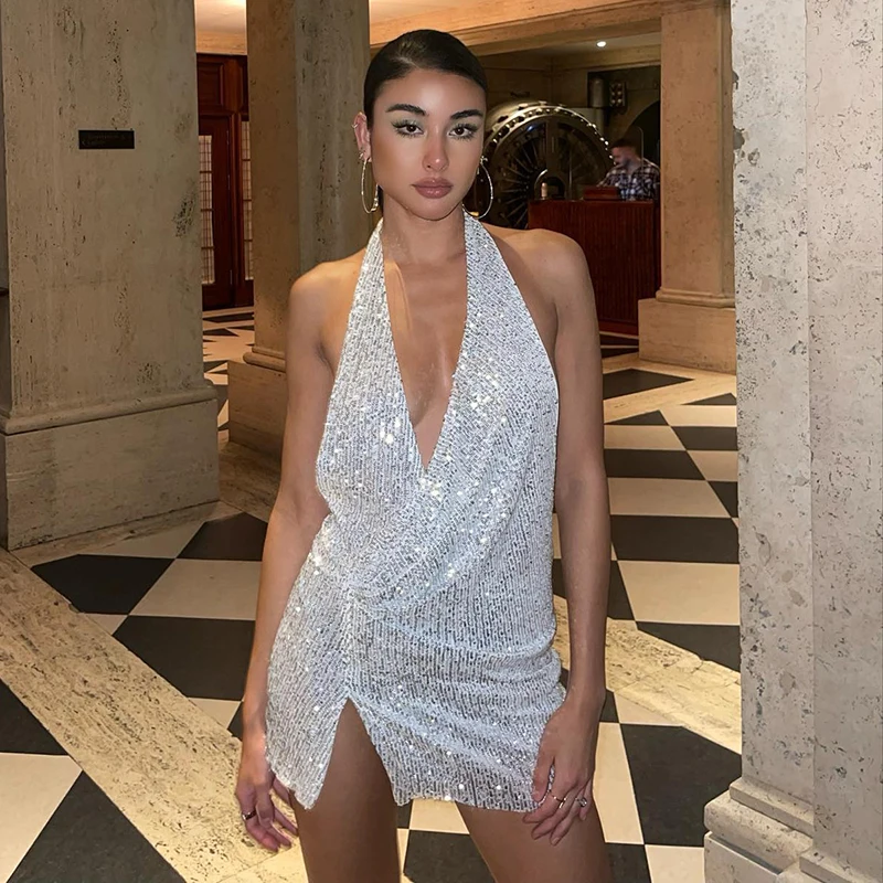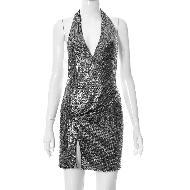 victoria’s vogue 2022 New Halter Sequins Slit Sexy Mini Dress Women Bar Party Dress Evening Dress Original Design