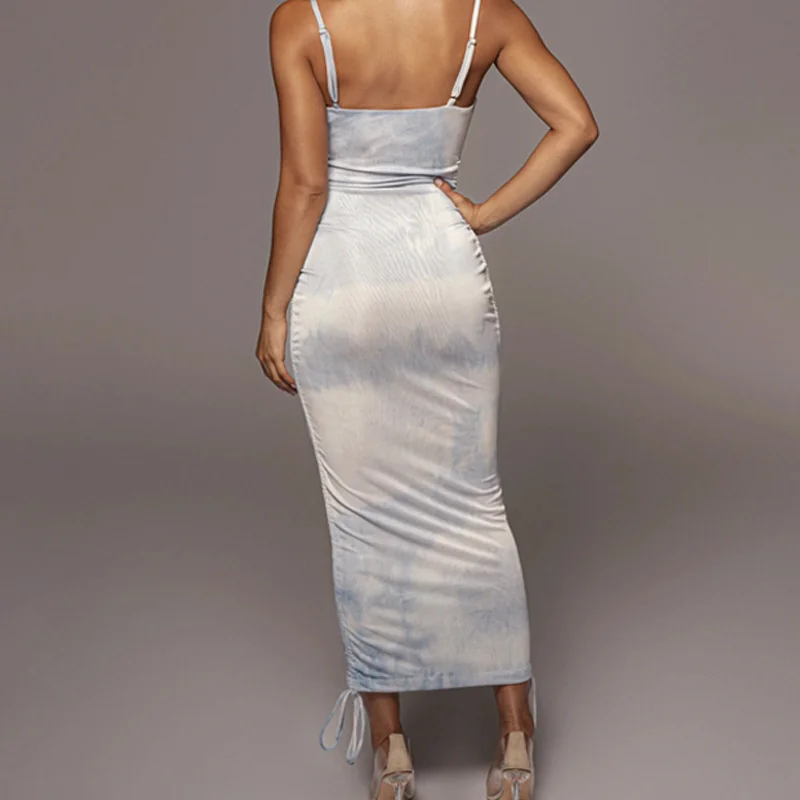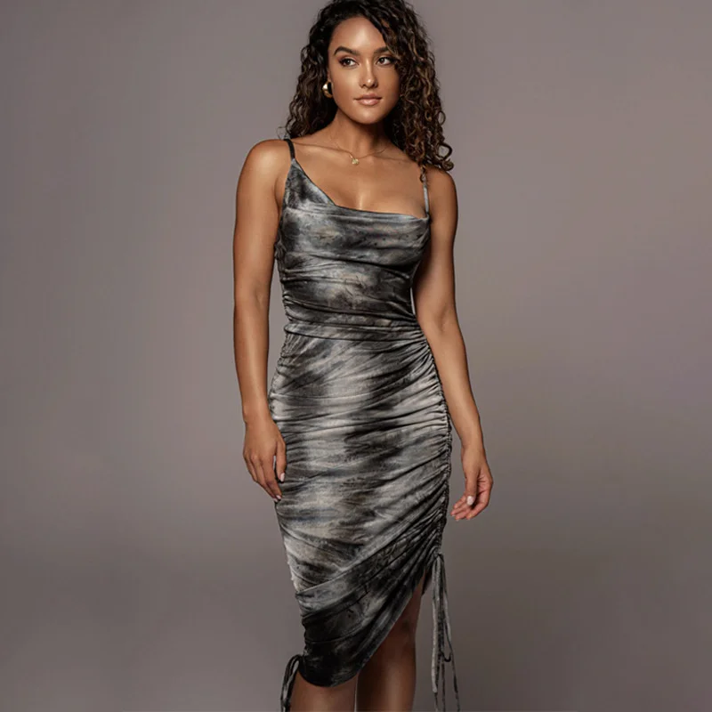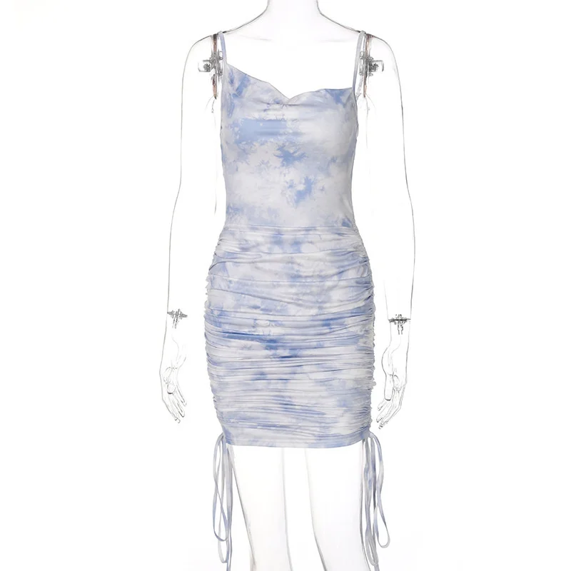 victoria’s vogue 2022 Spring New Printed Dress Women Y2K Casual Daily Dresses Ladies Drawstring Slim Backless Women Vestido