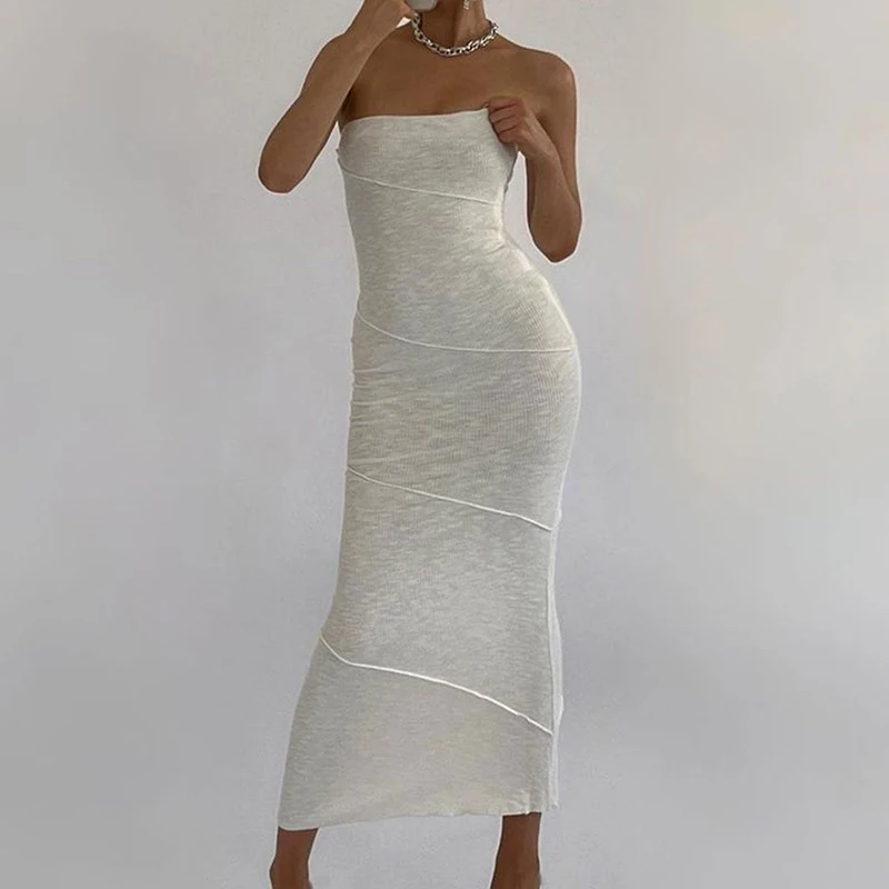 victoria’s vogue 2022 Spring New Women Solid Color Wrap Chest Slim Fit Hip Simple Three-dimensional Line Dress Casual Fashion