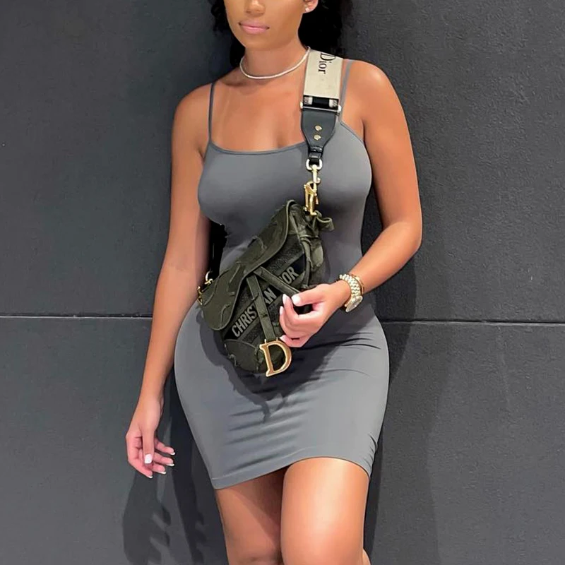 victoria’s vogue 2022 Summer Hot Sale Solid Color Versatile Sling Dress Skinny Shaped Office Lady Mini Skirt