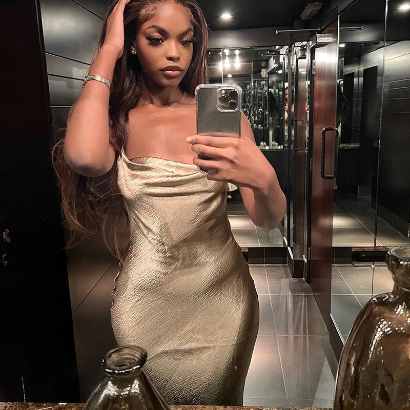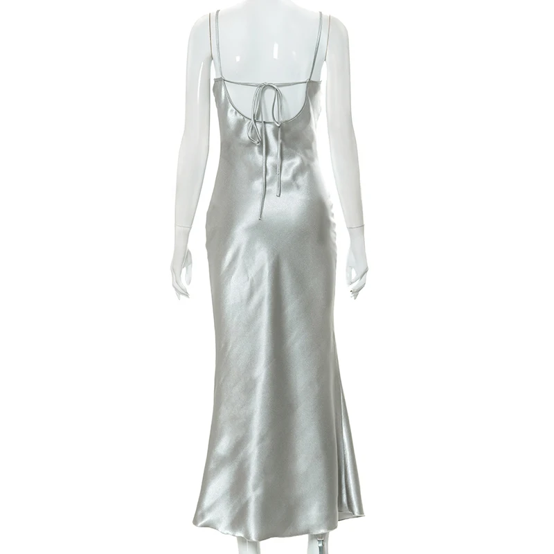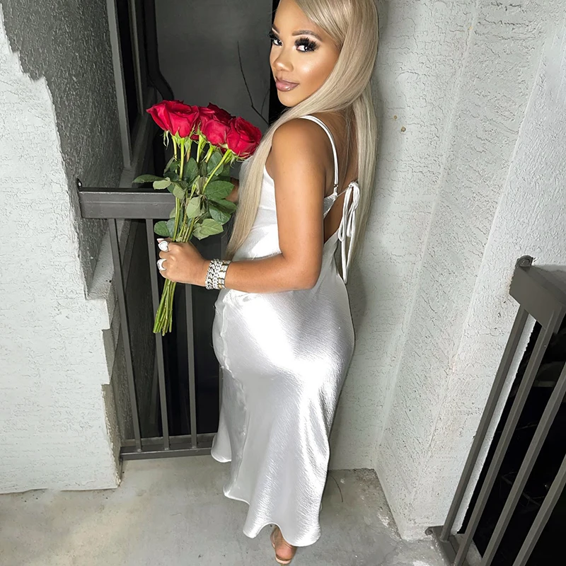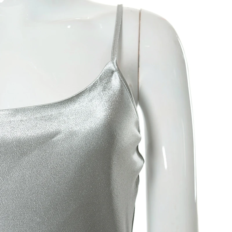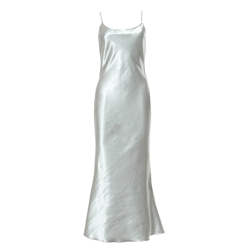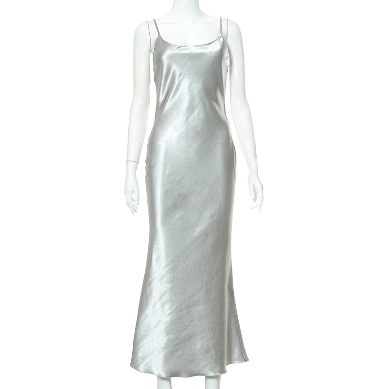 victoria’s vogue 2022 Summer New Products Golden Silver Satin Suspenders Simple Temperament Fashion Dress Party Prom Women Long Skirt
