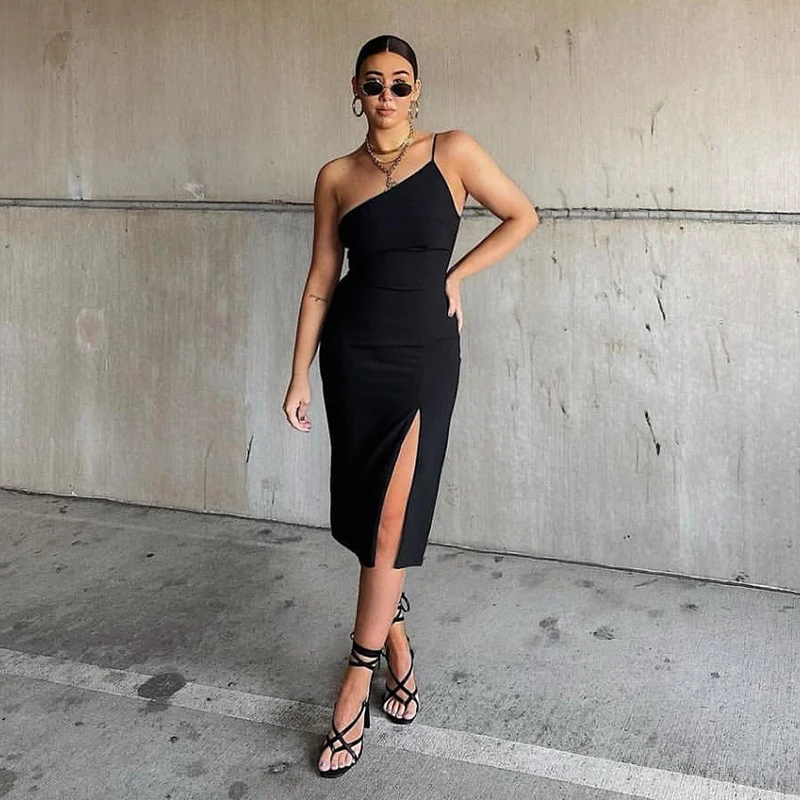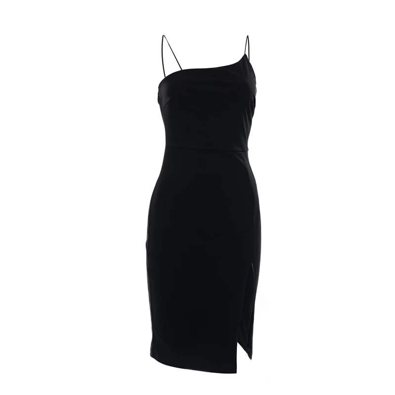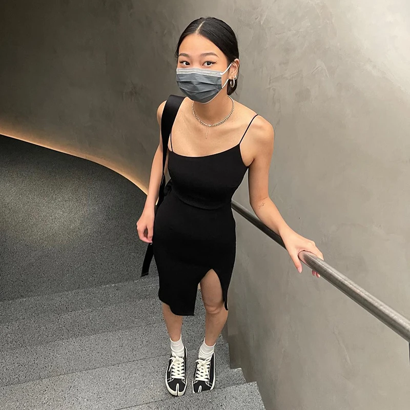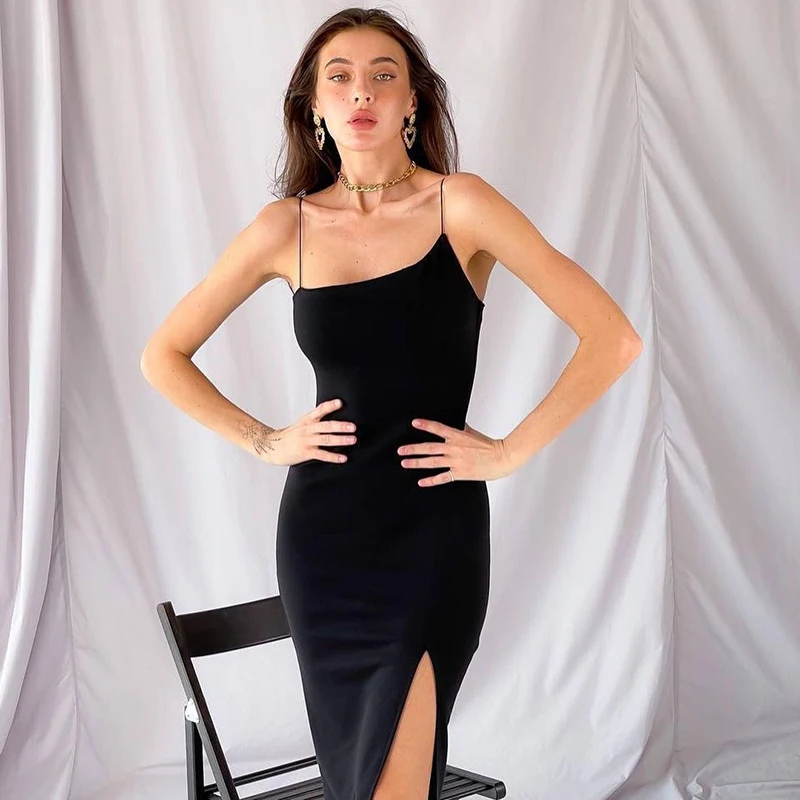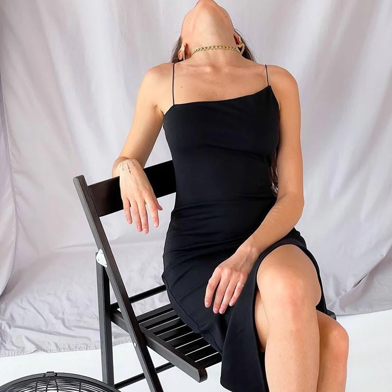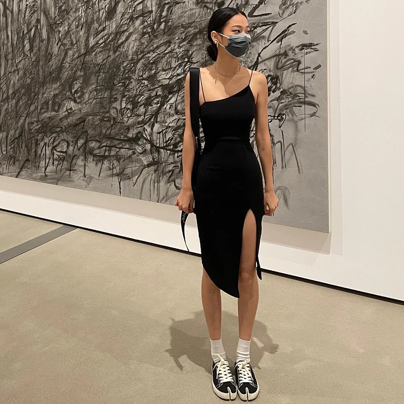 victoria’s vogue 2022 Summer New Solid Color Sling Slant Collar Temperament Dress Female Side Slit Simple Advanced Student Wear