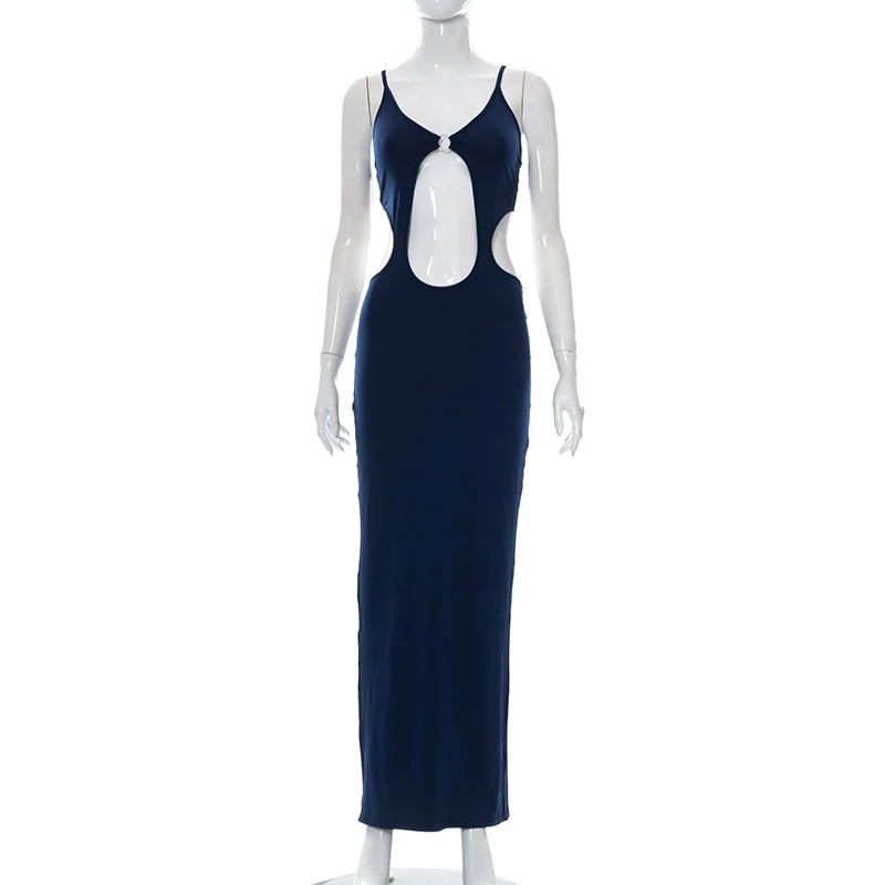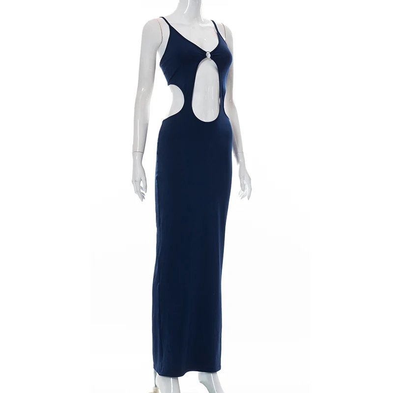 victoria’s vogue 2022 Summer New Solid Color Sling V-Neck Hollow Slim Fit Sexy Temperament Long Dress Women