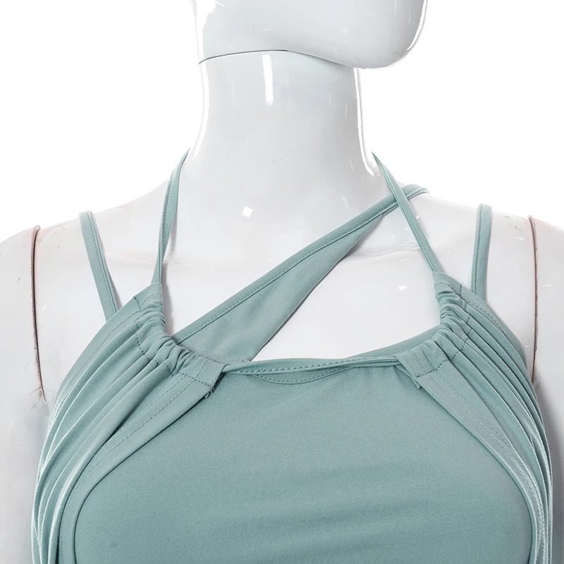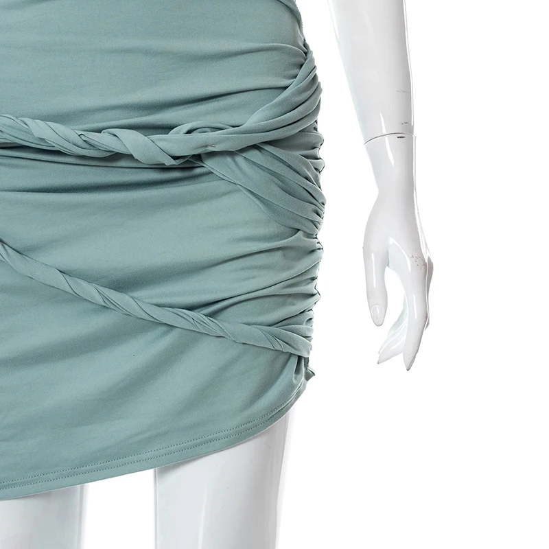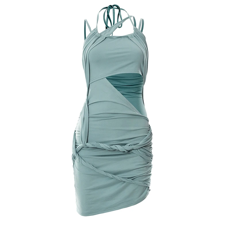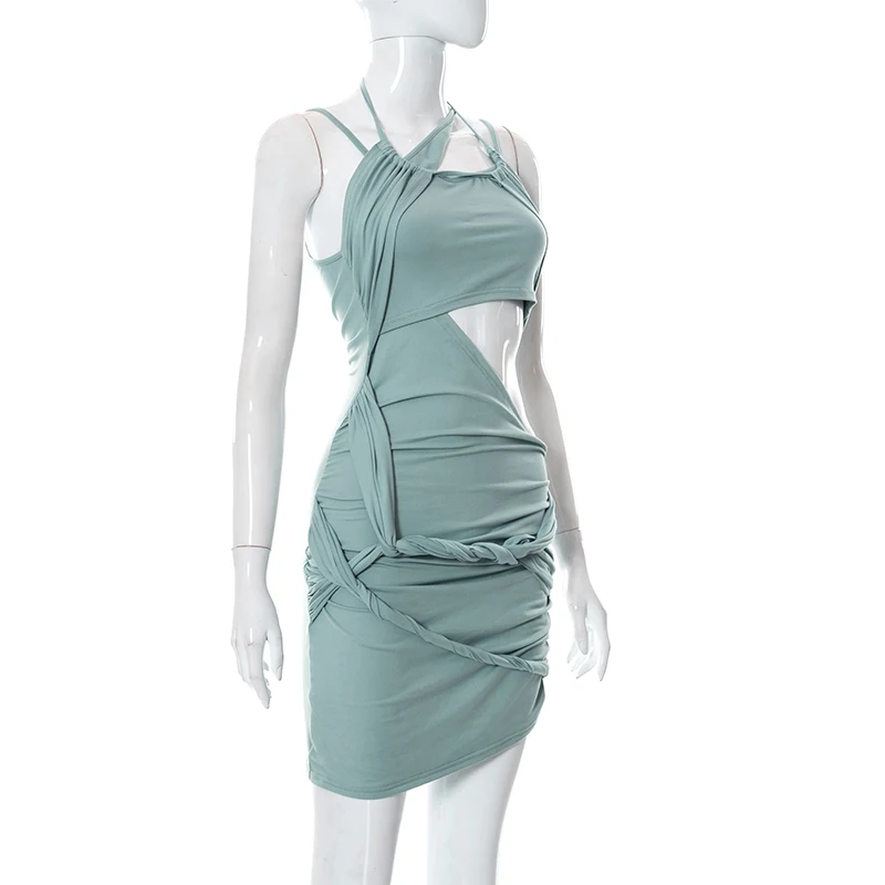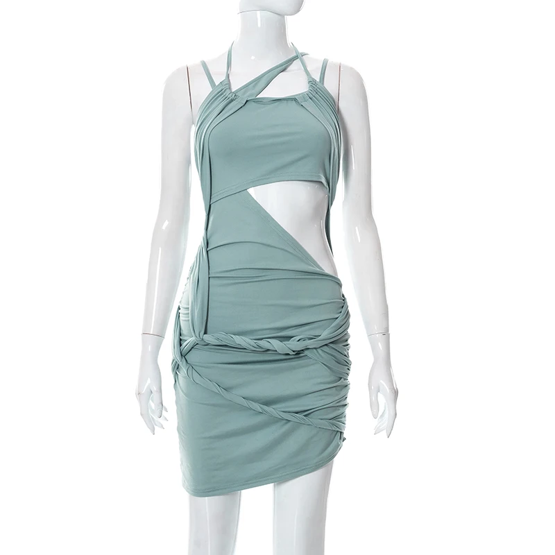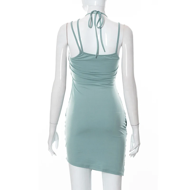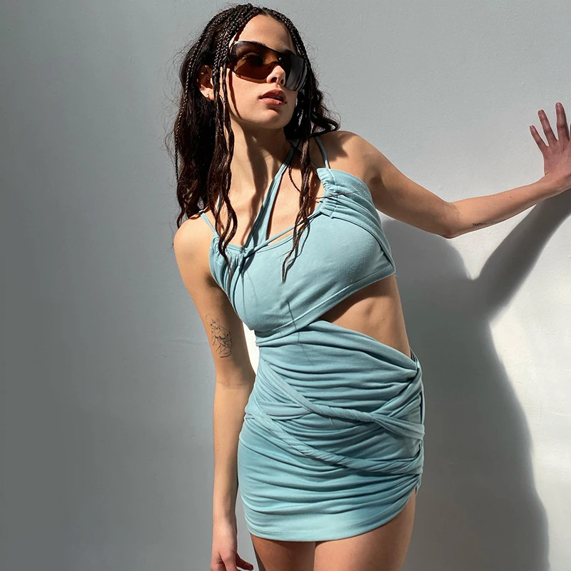 victoria’s vogue 2022 Y2K Summer Solid Color Lace-Up Backless Sleeveless Hollow Pleated Irregular Mini Dress Women Sweet Style