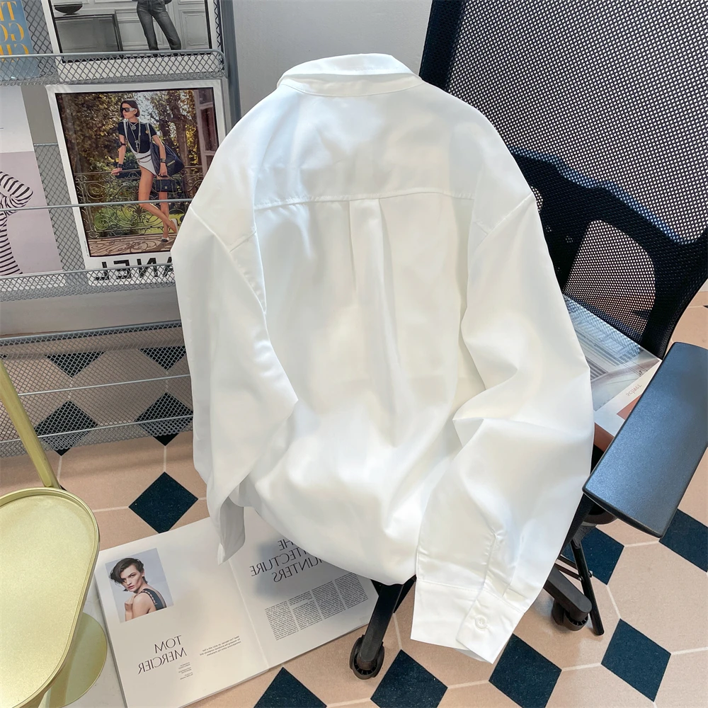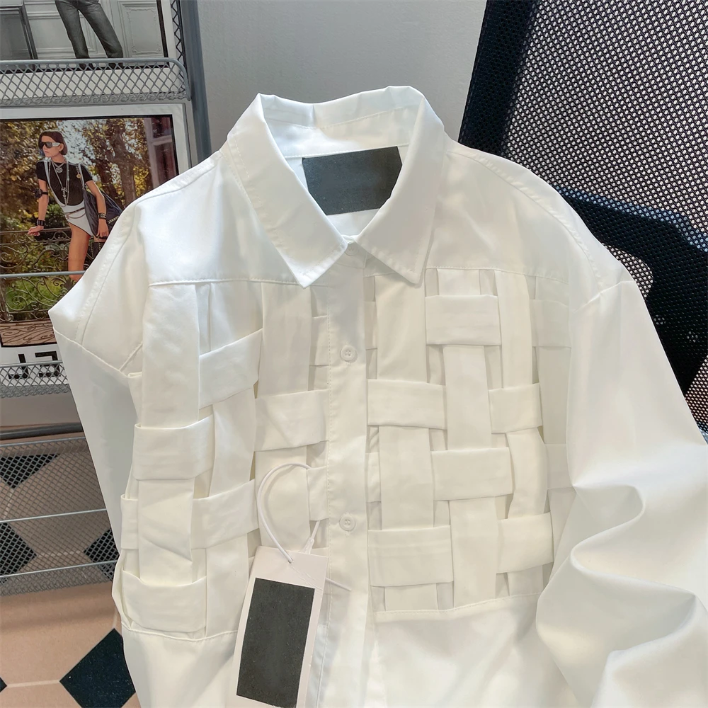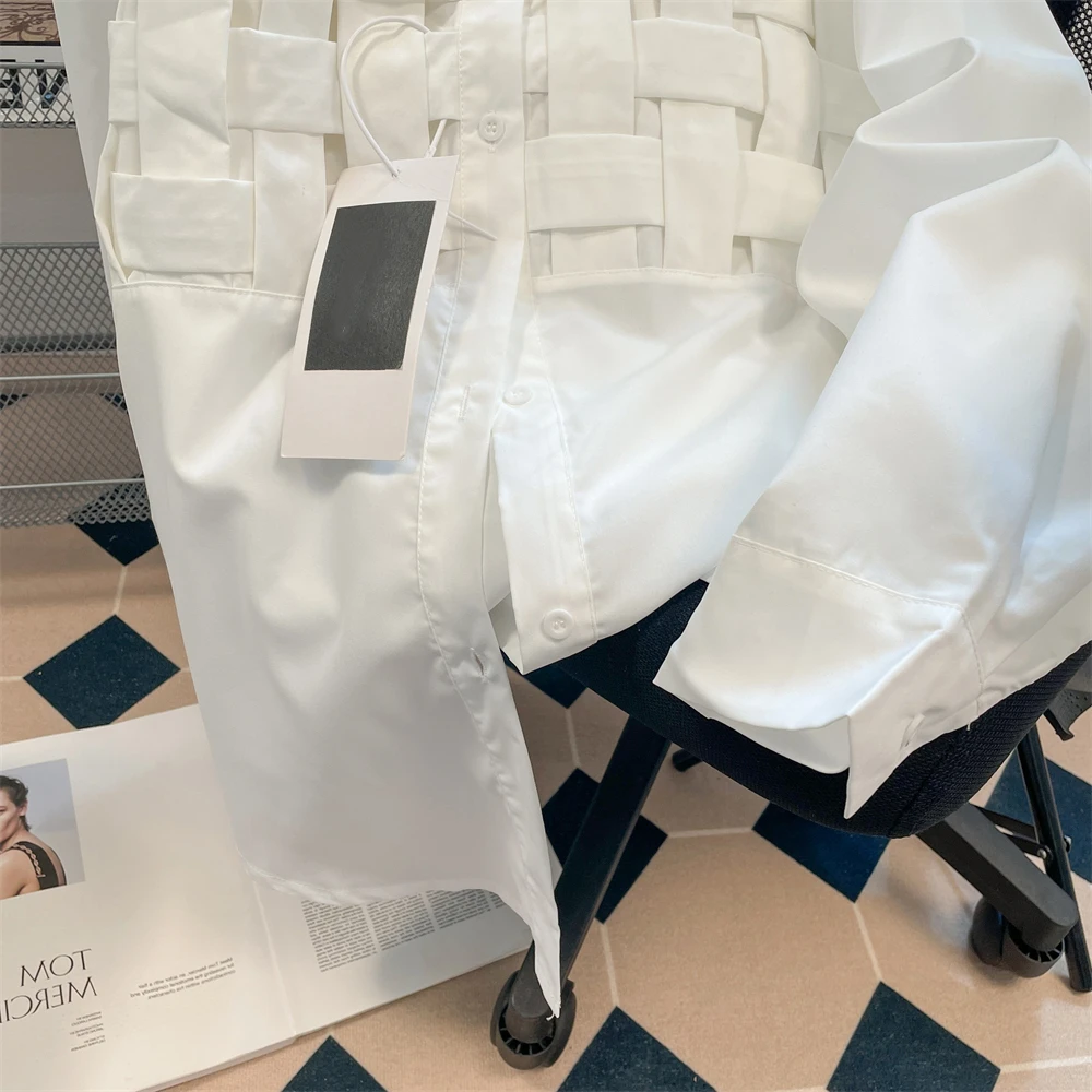 Victoria’s Vogue 2023 Spring Women White Blouses Shirts Turn-down Collar Full Solid Hollow Out Girls Blouse Tops Simple Preppy Style Small Fresh