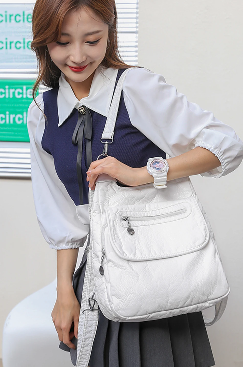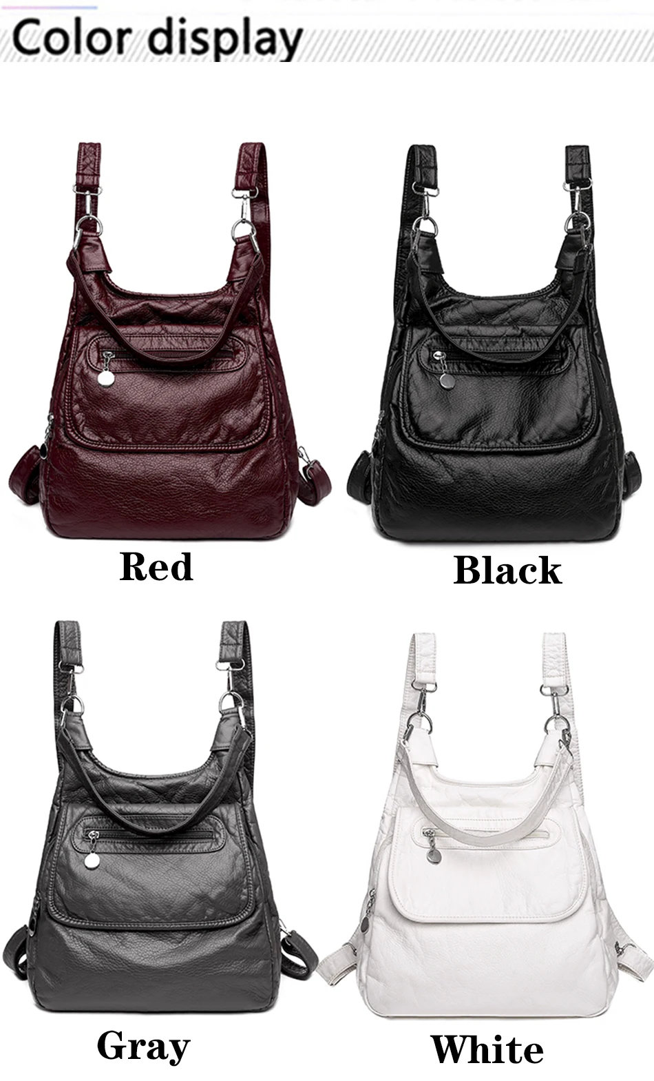 Victorias vogue 2024 Multifunctional Backpack Soft Washed PU Leather Shoulder Bags Large Capacity Fashion Backpack School Bag for Teenager Girls
