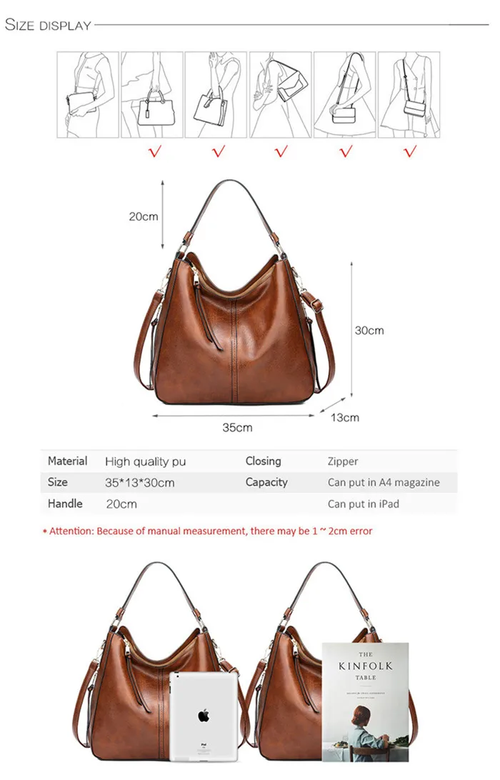 Victoria’s Vogue 2024 Vintage Women Shoulder Crossbody Bag Female Brand Casual Big Totes High Quality PU Leather Ladies Hobo Messenger Bag Sac