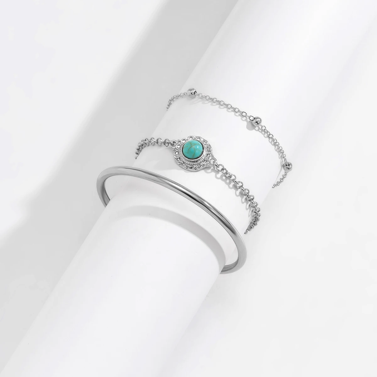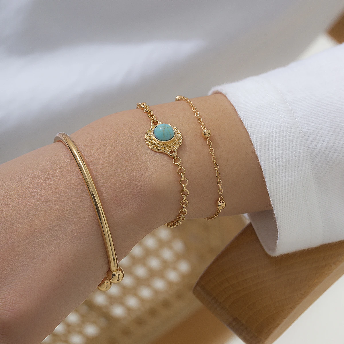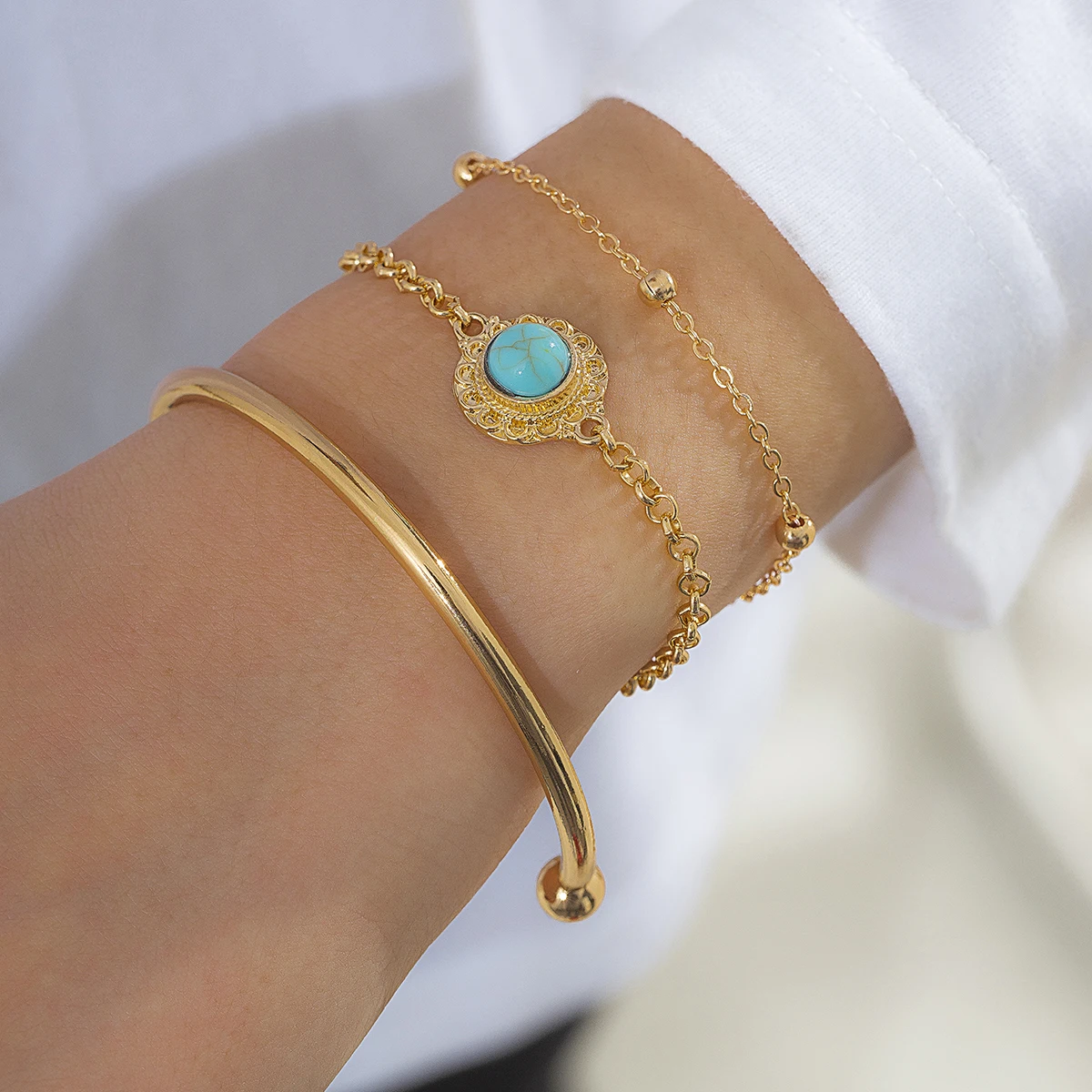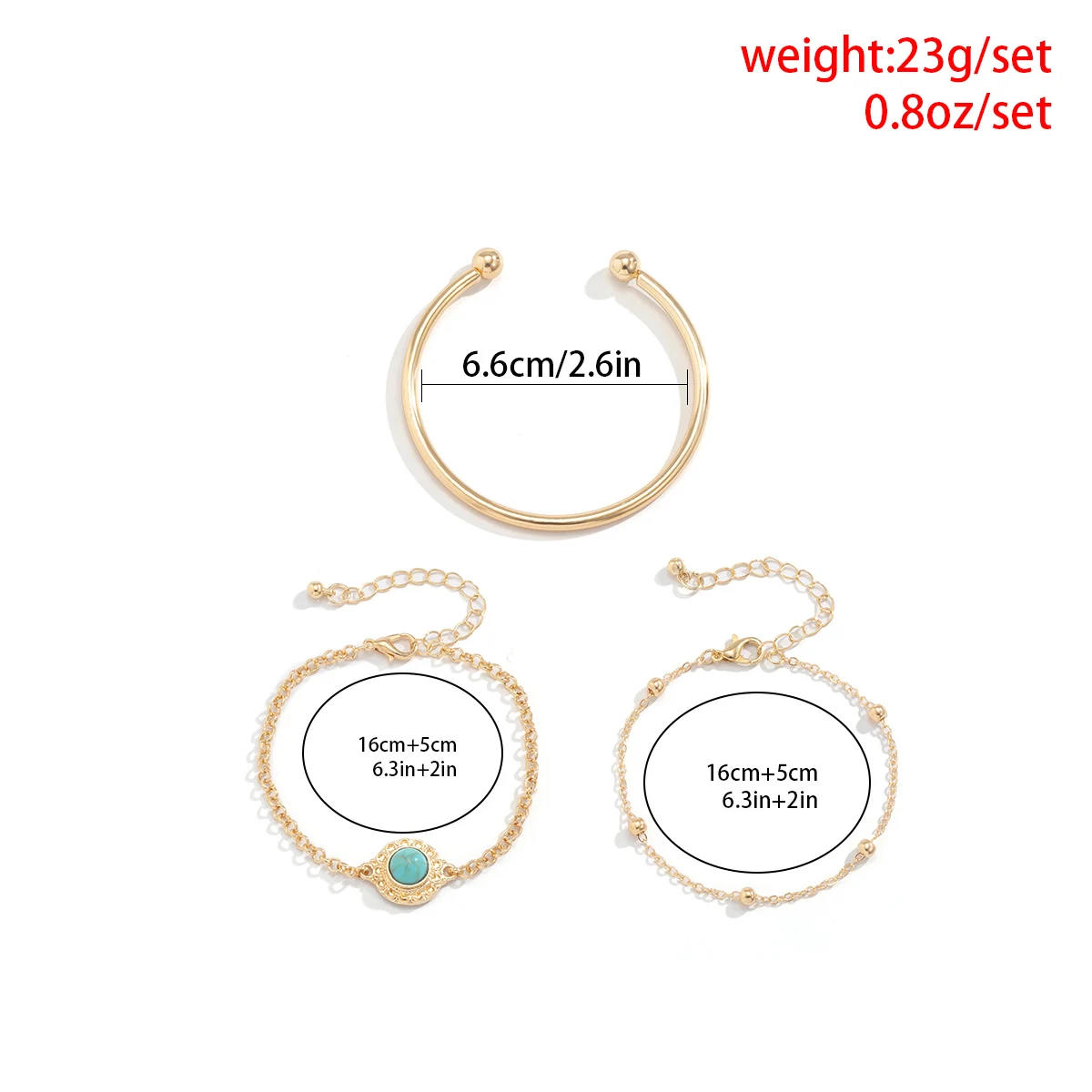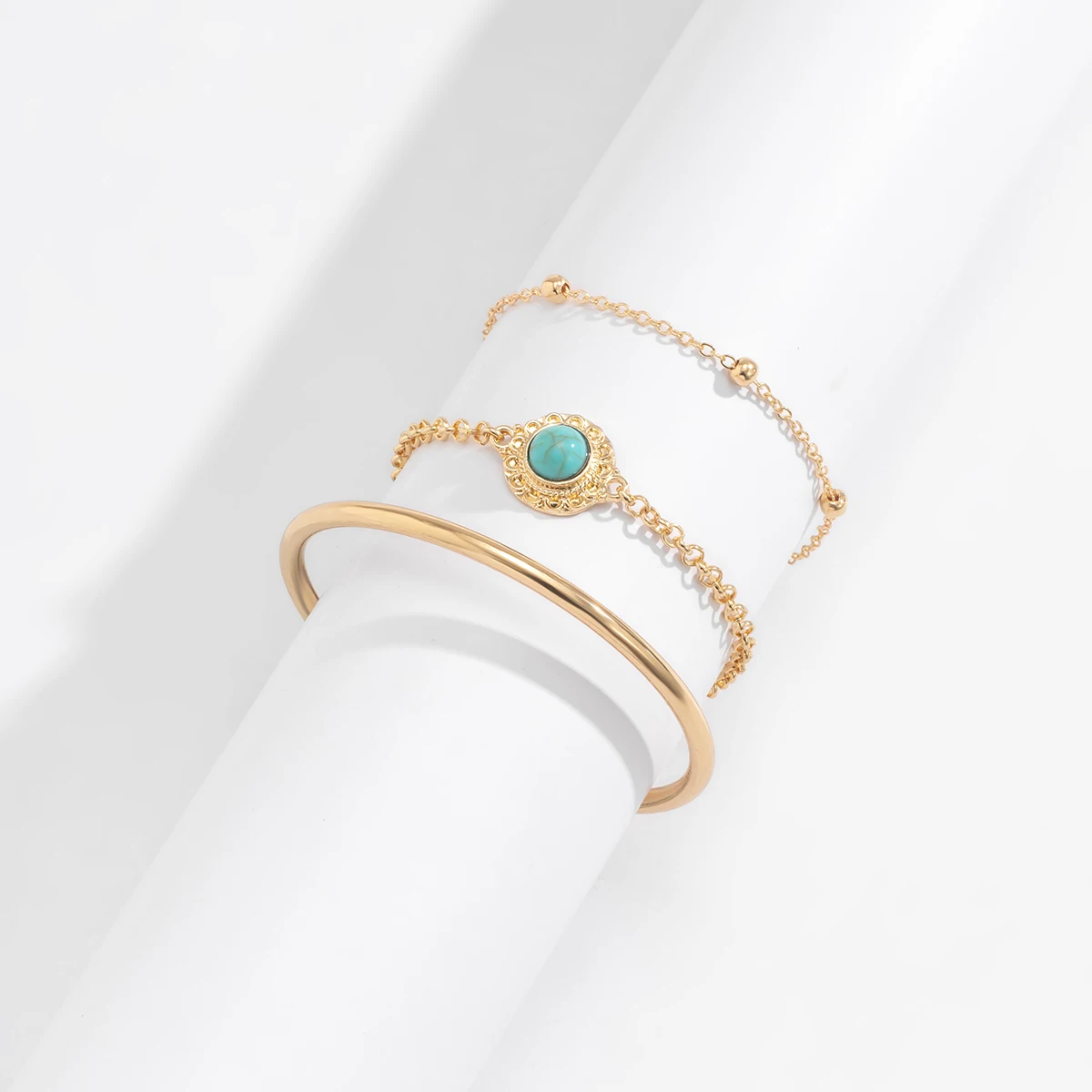 victoria’s vogue 3PCS/set Blue Stone Bracelets & Bangles For Women Bohemian Gold Color Thin Charm Bracelets Party Jewelry Sets