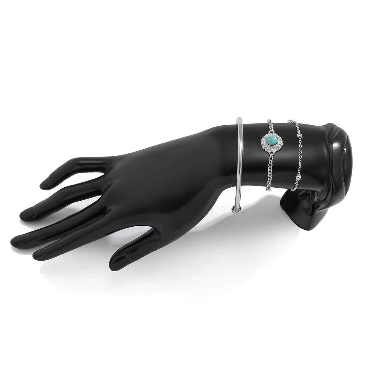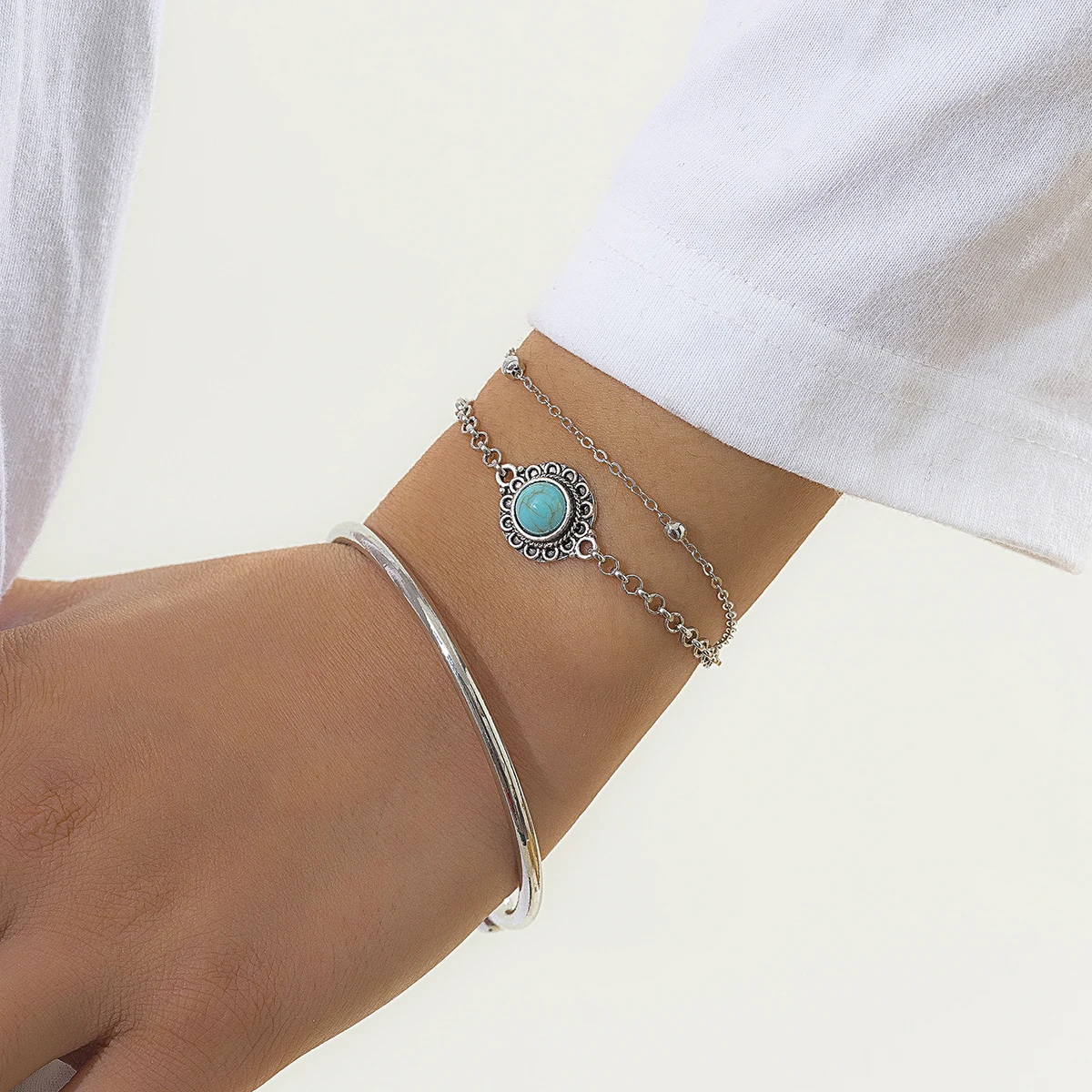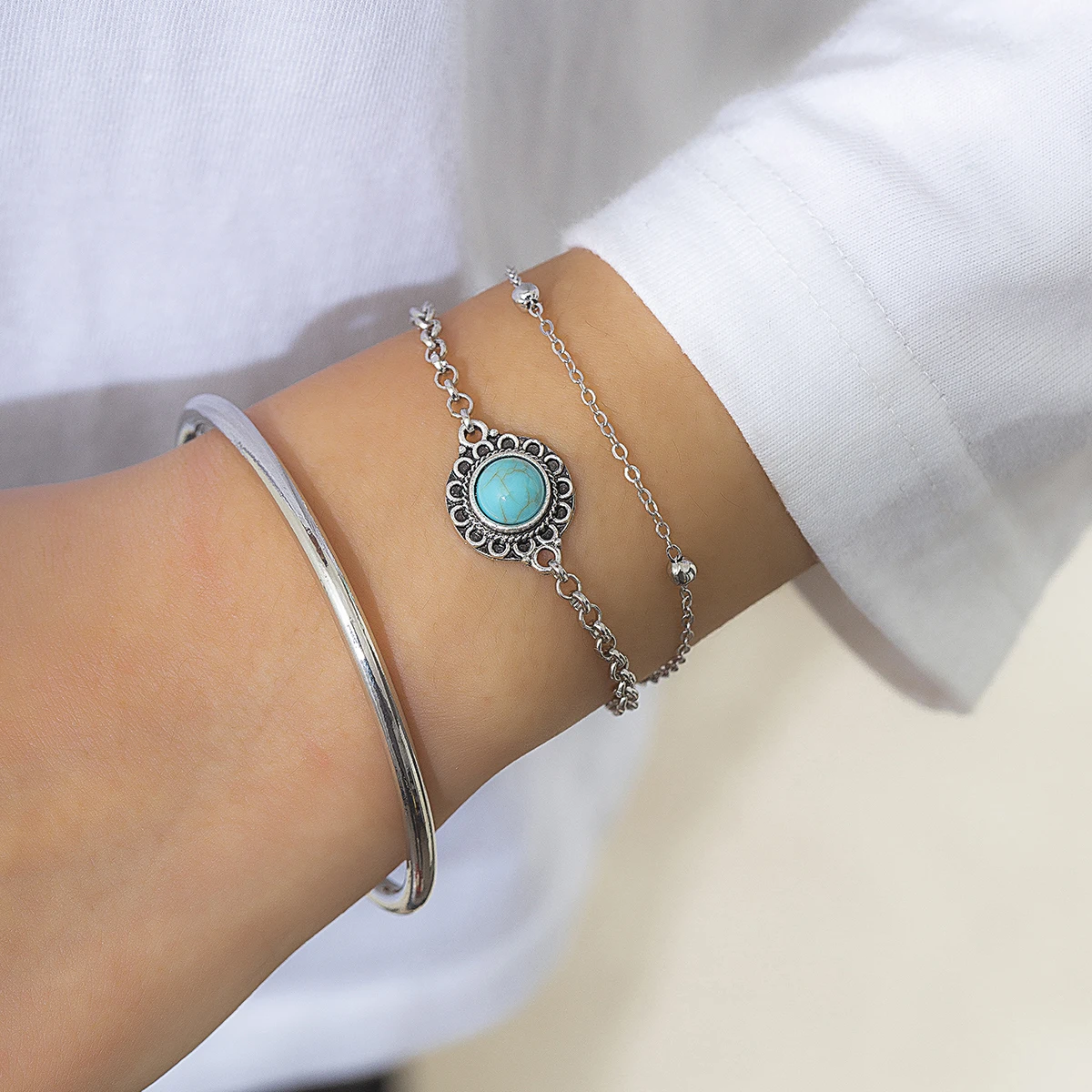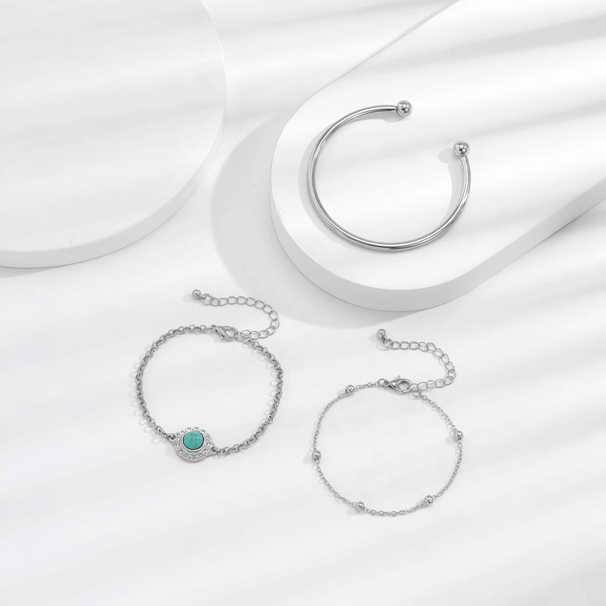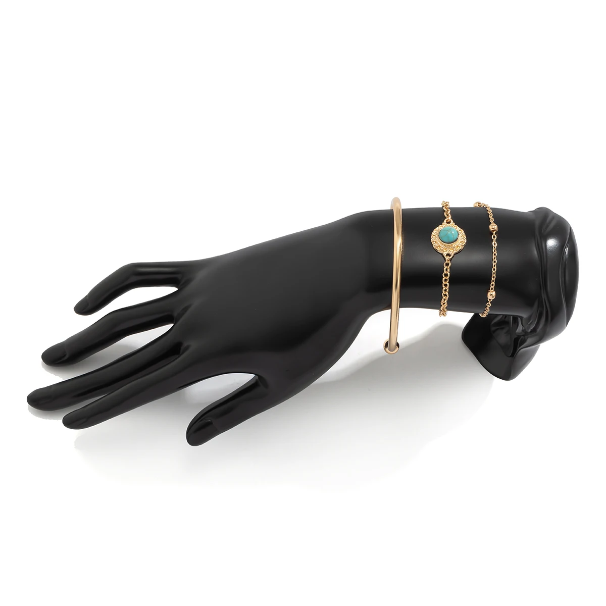 victoria’s vogue 3PCS/set Blue Stone Bracelets & Bangles For Women Bohemian Gold Color Thin Charm Bracelets Party Jewelry Sets
