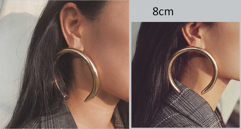 victoria’s vogue 8cm/5cm Punk Exaggerated Thick Tube Round Circle Stud Earrings 2018 Korean Half Moon Earrings for Women Jewelry Gift |