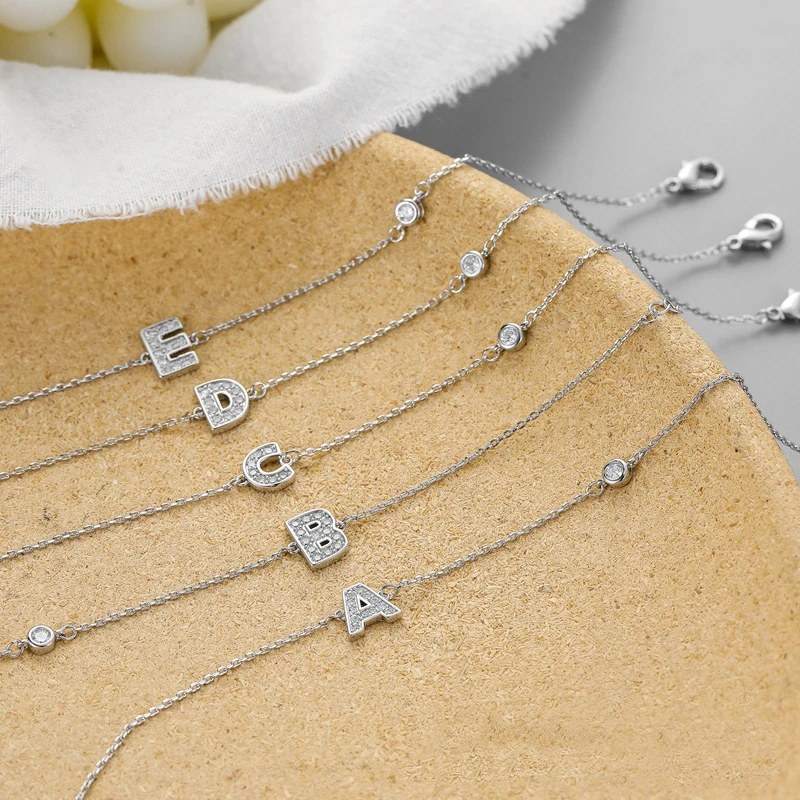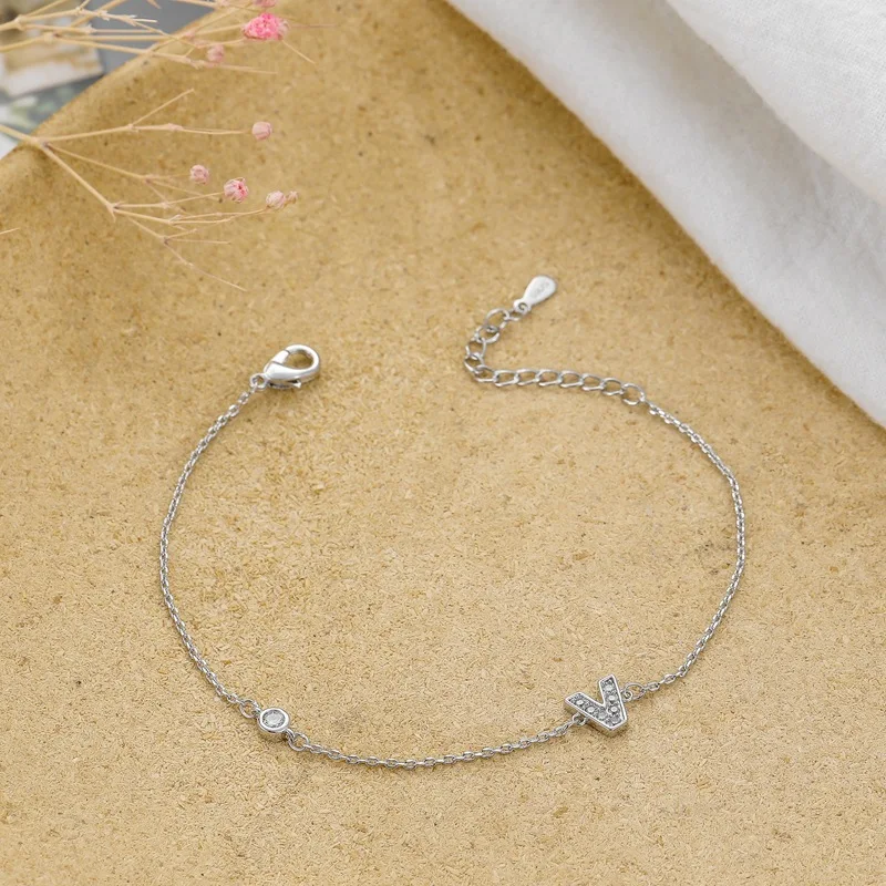Victoria’s Vogue 925 Silver 26 English Alphabet Bracelets Personalised Zirconia Letter Chain Initial Name Bracelet for Women Jewelry Accessories