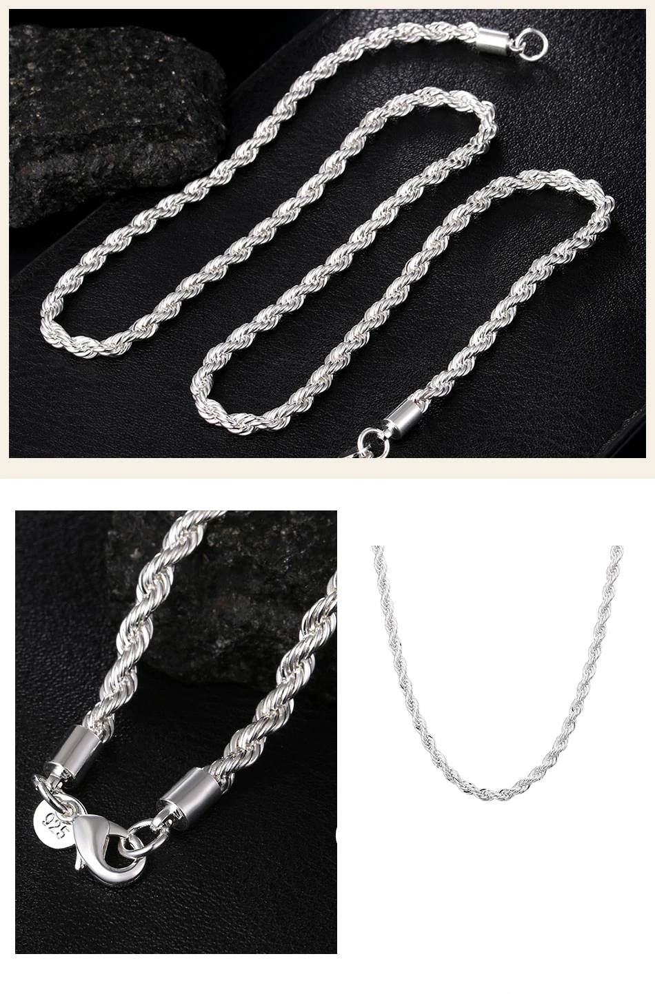 victoria’s vogue 925 Sterling Silver 16/18/20/22/24 Inch 4mm Twisted Rope Chain Necklace For Women Man Fashion Wedding Charm Jewelry