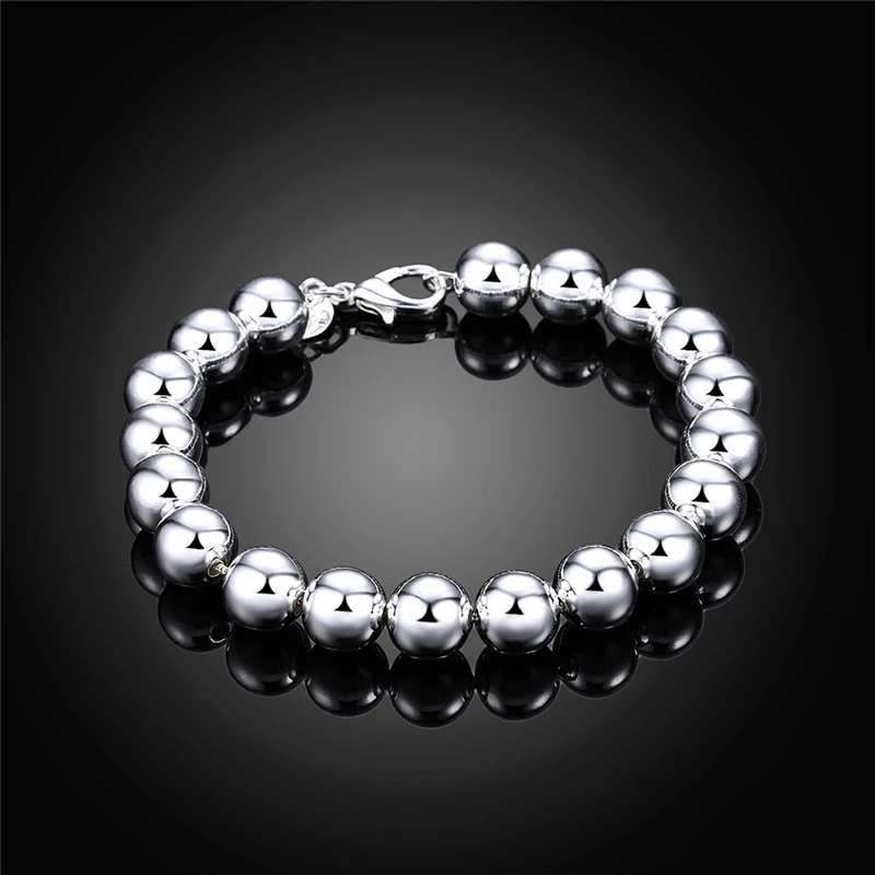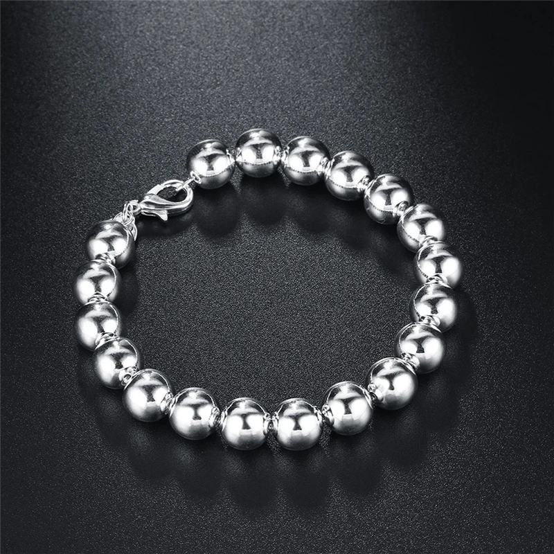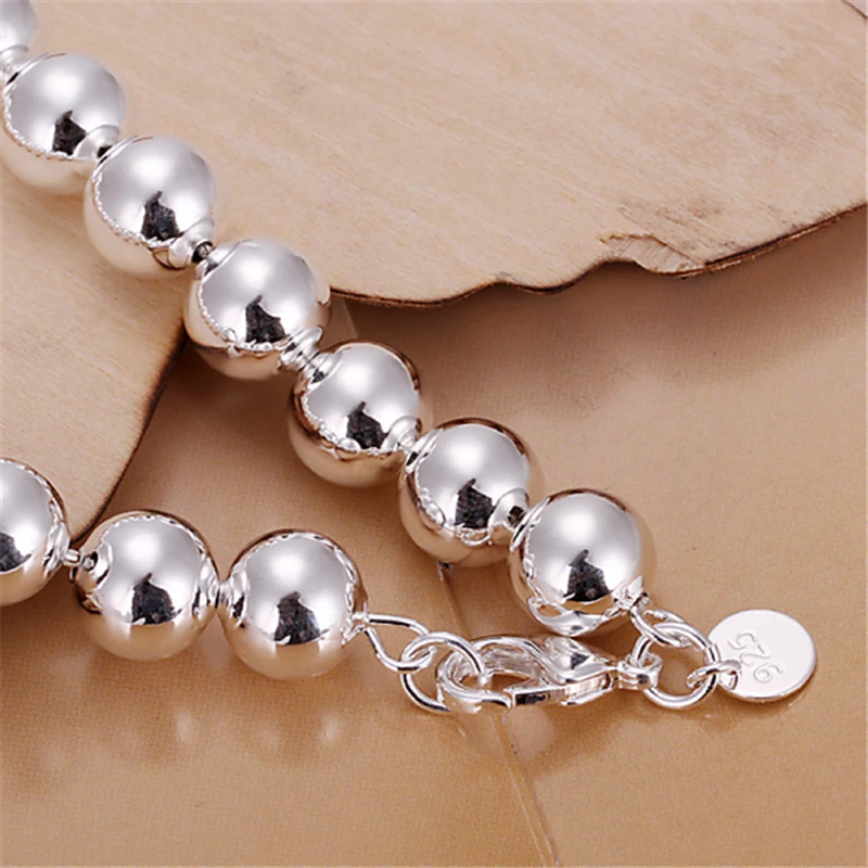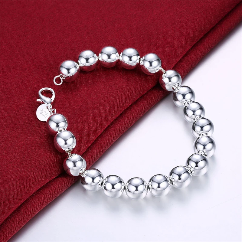 victoria’s vogue 925 Sterling Silver 8mm/10mm Hollow Circle Ball Beads Silver Beaded 20cm Bracelet Woman Charm Fashion Jewelry