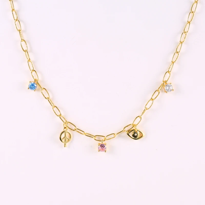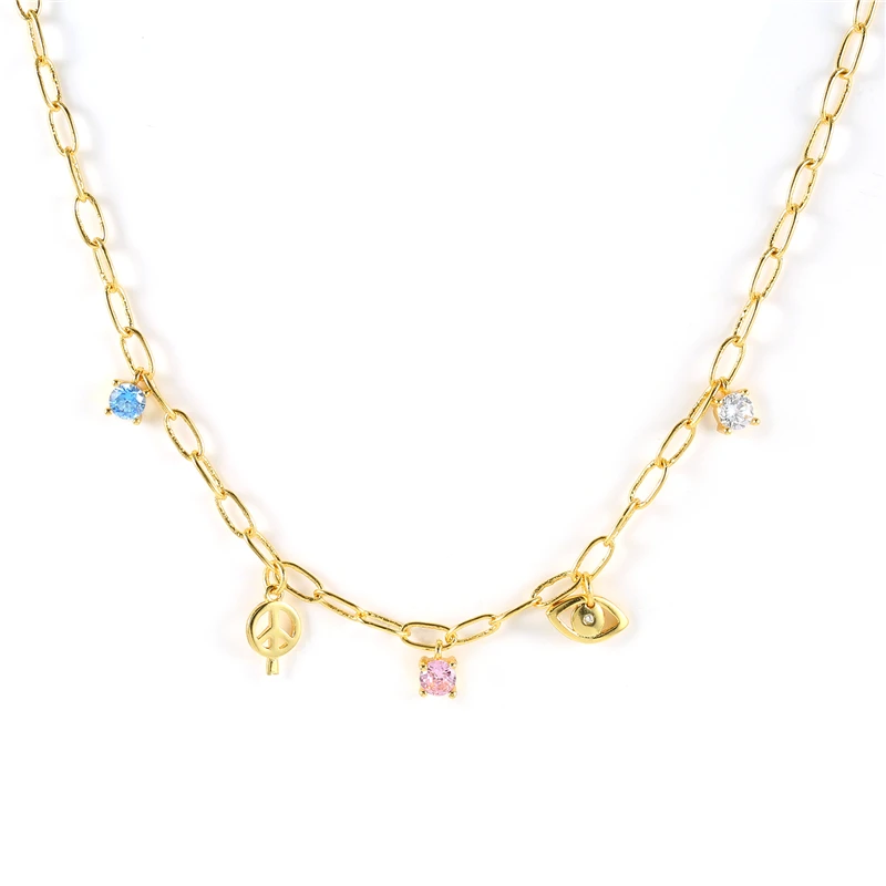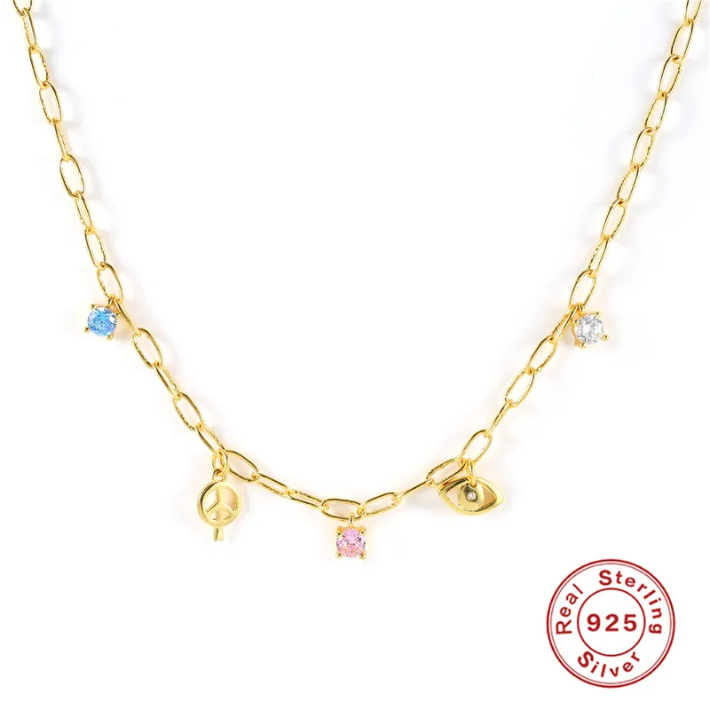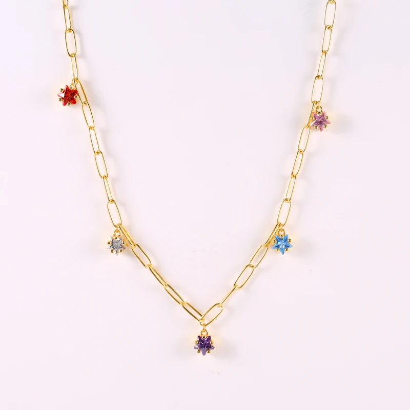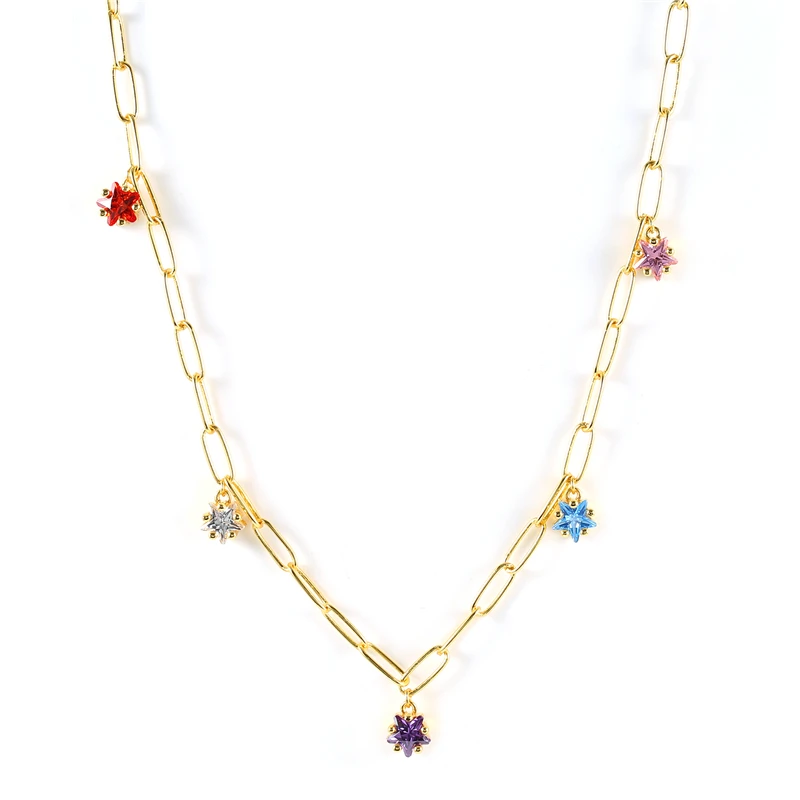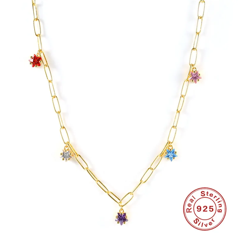 victoria’s vogue 925 Sterling Silver Big Thick Chain Necklace Colored Zircon Star Pendants Charms Choker Necklaces 2021 Fashion Party Jewels