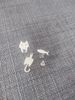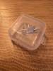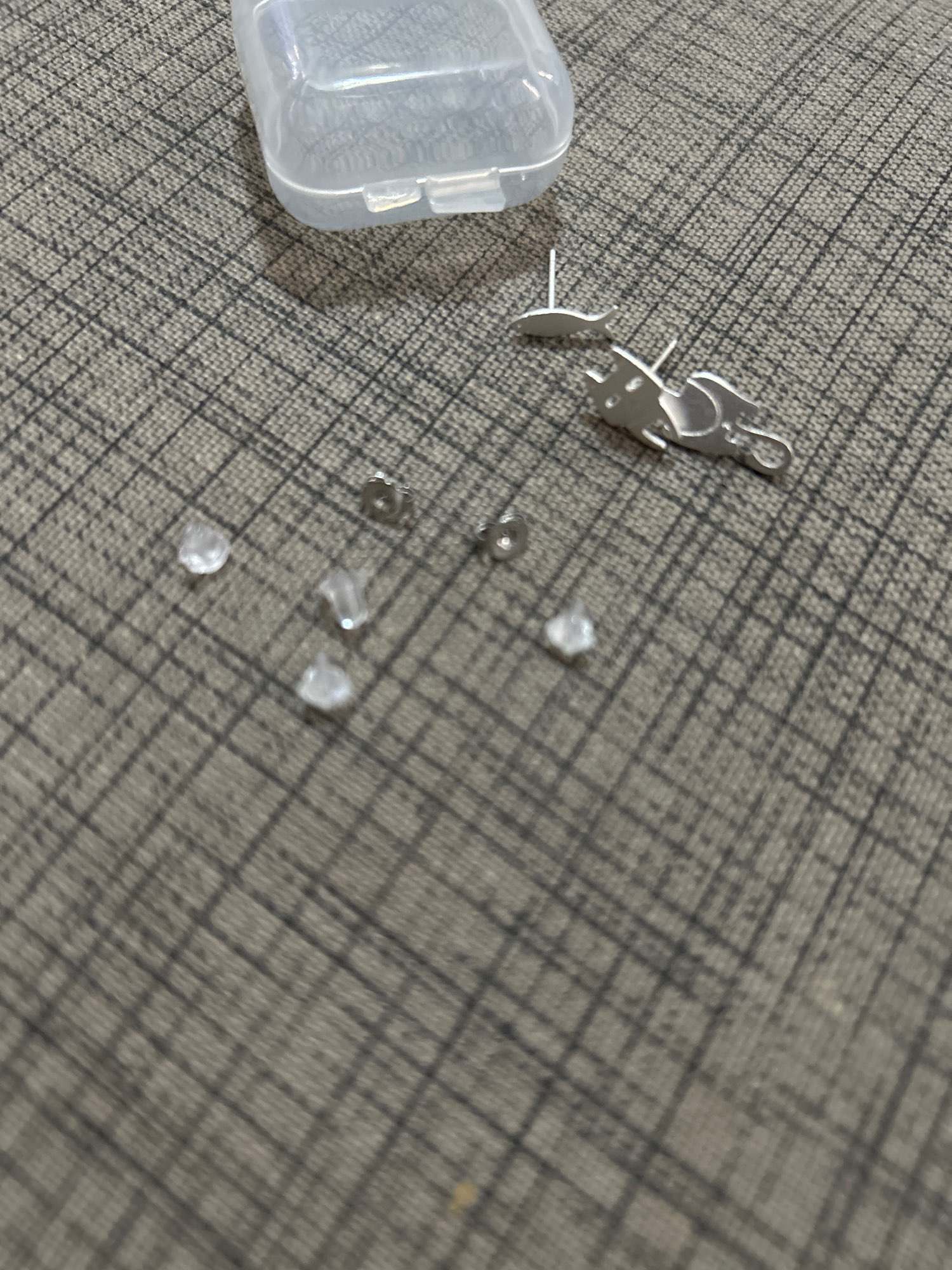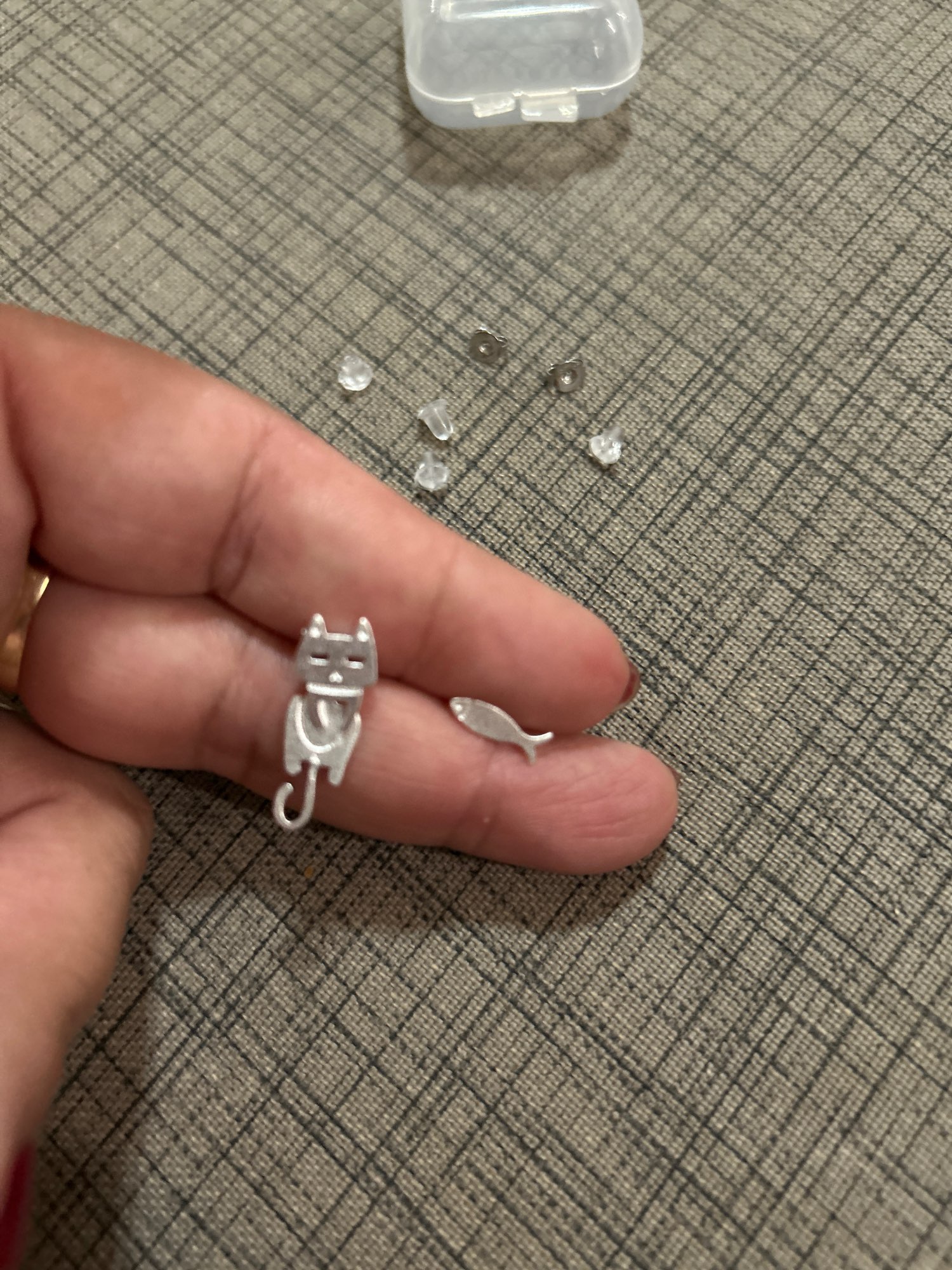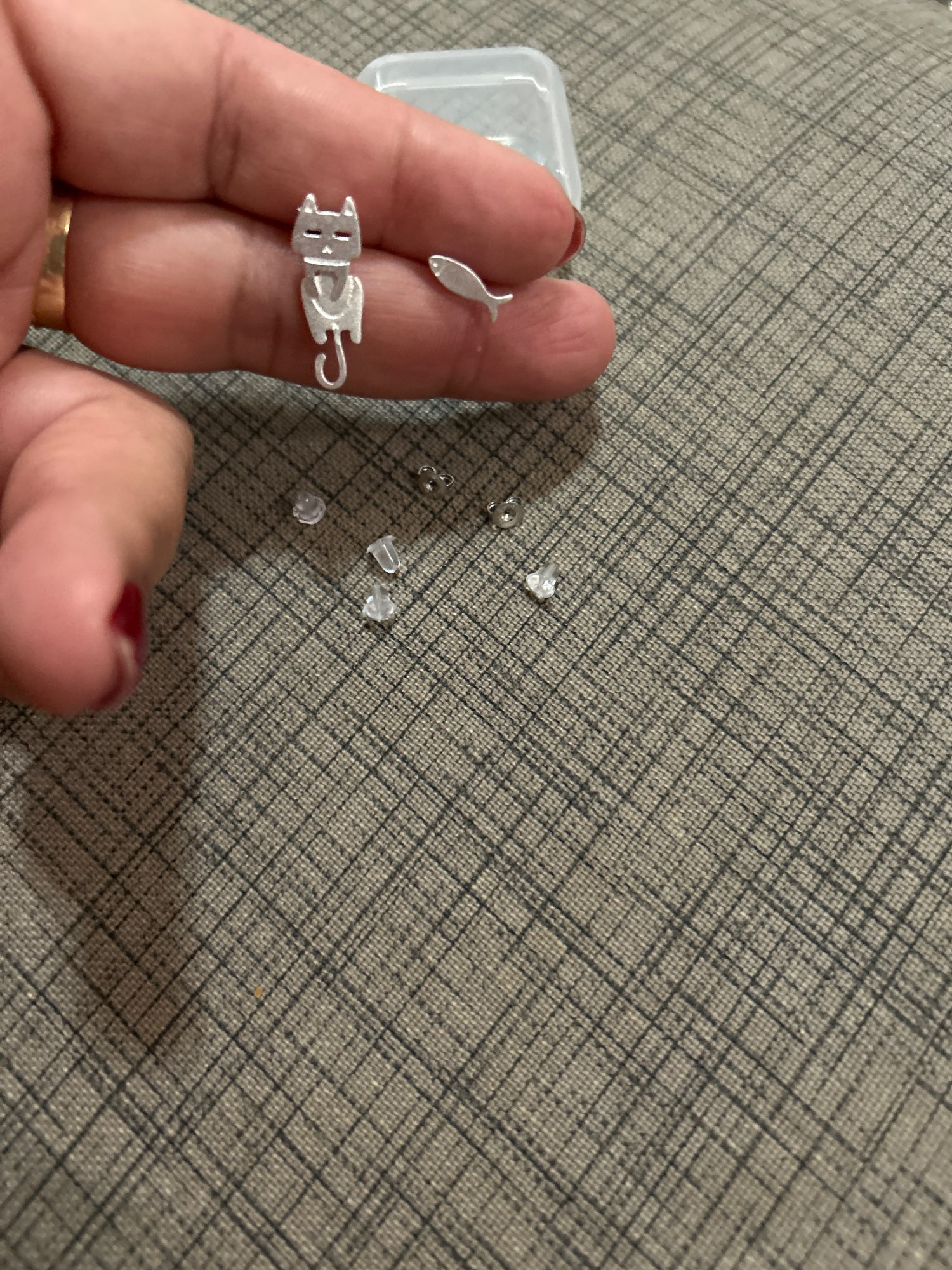 Todas las cositas chiquitas de plata llegan en estas cajitas plasticas muy bien selladas. Los aretes son mucho mas pequeños que lo que se ve en la publicacion, hay que cuidarlos mucho pues son delicados. Las tuercas ectivamente tienen el sello caracteristico que se le pone a la plateria, pero los aretes no lo tienen, parecen de plata en realidad. Voy a estar al pendiente y si se despintan volvere para comentar.