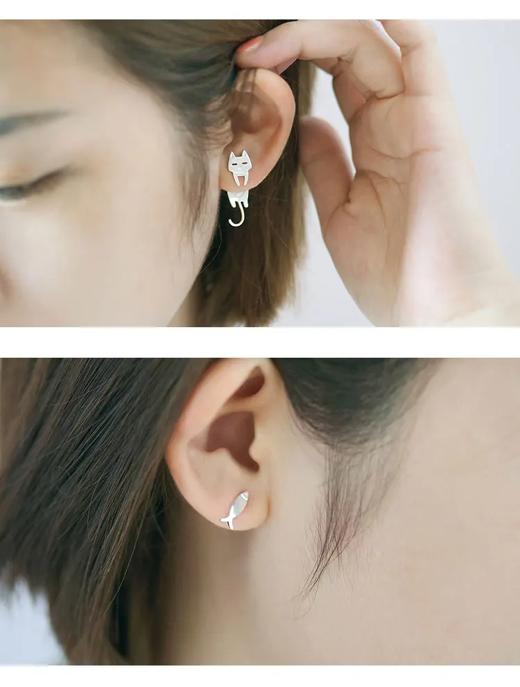 Victoria’s Vogue 925 Sterling Silver Cat Fish Stud Earrings For Women Gift Hypoallergenic Sterling-silver-jewelry Prevent Allergy