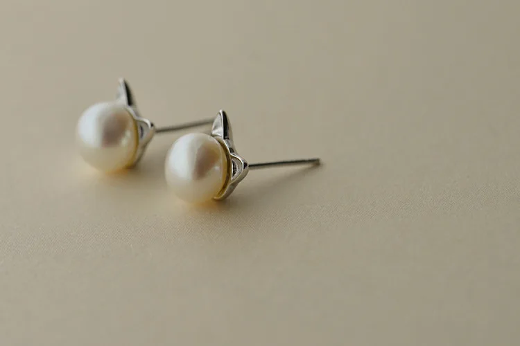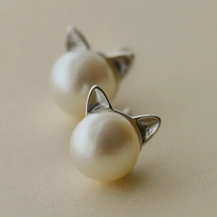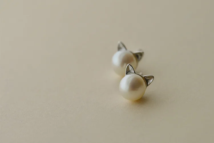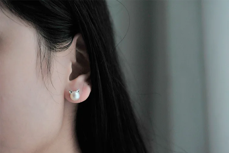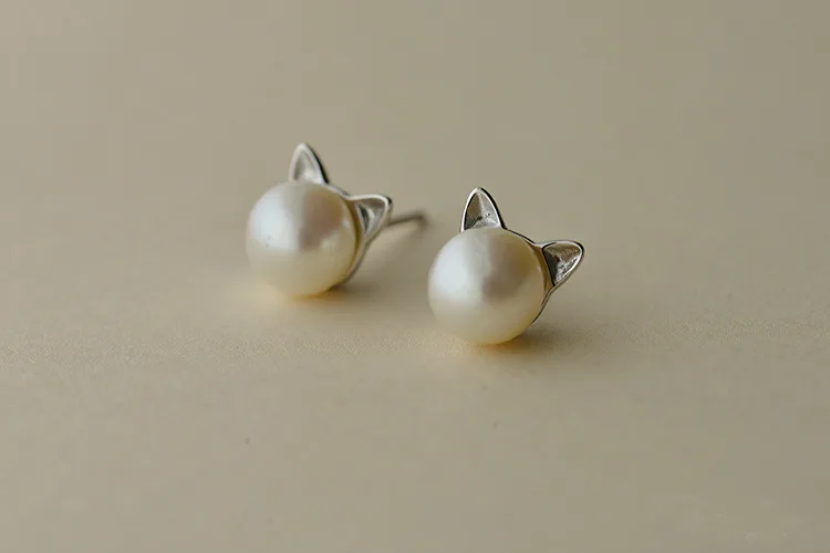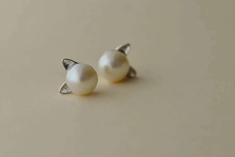 victoria’s vogue 925 sterling silver Cat pearl Stud Earrings for Women Elegant Wedding Jewelry pendientes mujer moda Brincos