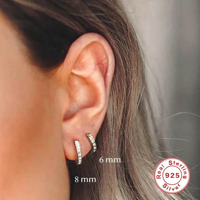 victoria’s vogue 925 Sterling Silver Clear Zircon Circle Round Stud Earrings For Women Party Wedding Ear Bone Buckle Charm Earring Jewelry