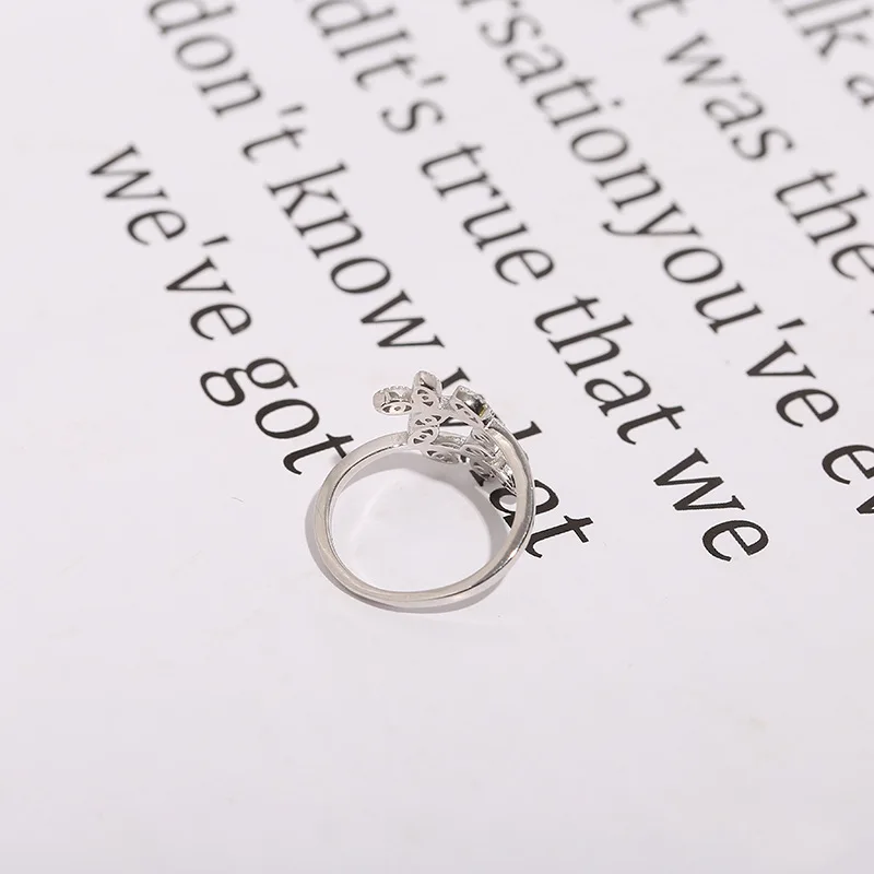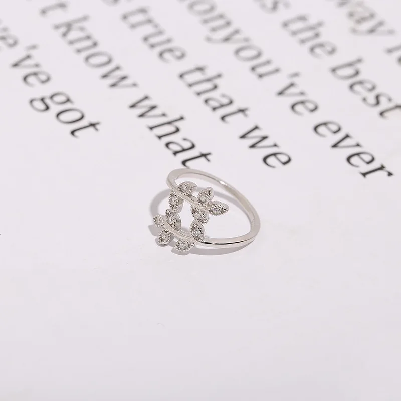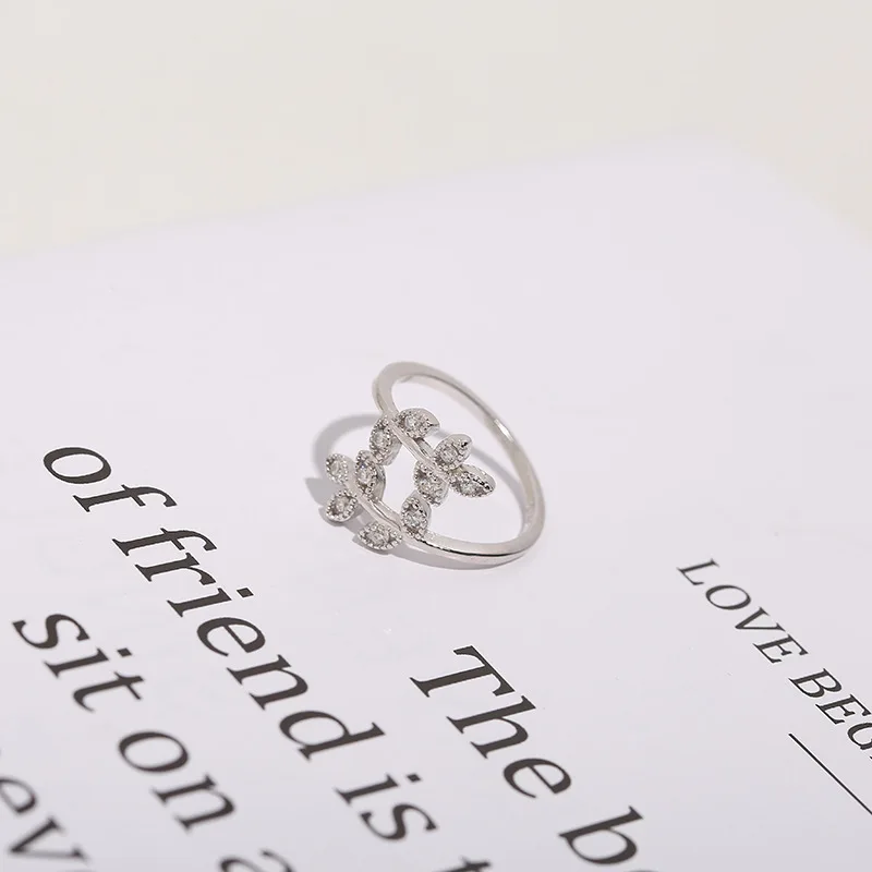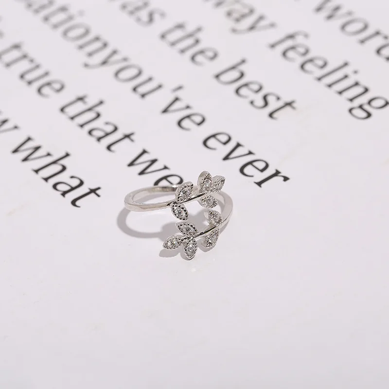 victoria’s vogue 925 Sterling Silver Color Crystal Leaf Rings For Women Wedding Jewelry Adjustable Antique Finger Ring Anillos