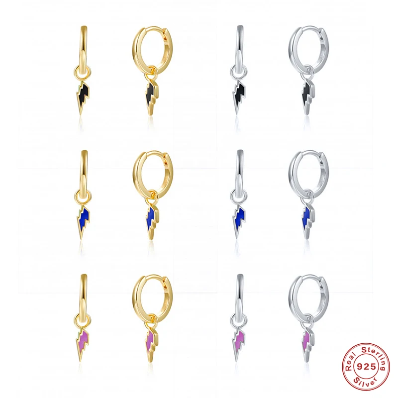 Victoria’s Vogue 925 Sterling Silver Colorful Enamel Lightning Shape Pendant Dangle Earrings For Women Small Circle Charm Drop Earrings Gift