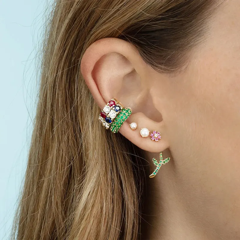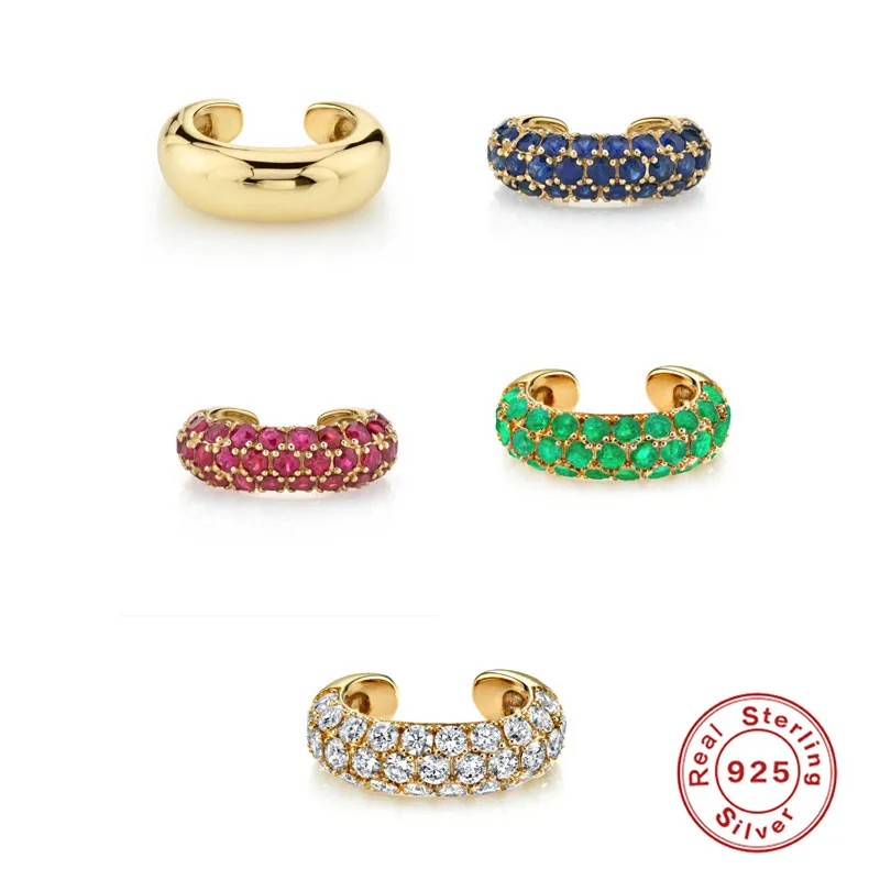 Victoria’s Vogue 925 Sterling Silver Colorful Pave Zircon Ear Cuff No Piercing Crystal Clip Earrings Ear Clip For Women Girls Punk Rock Jewelry