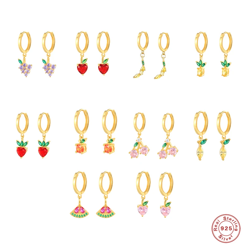 victoria’s vogue 925 Sterling Silver Cute Fruit Charm Dangle Earrings For Women Girl Gift Apple Strawberry Grape Pendants Drop Earring