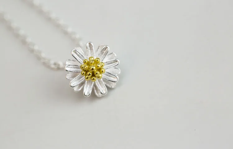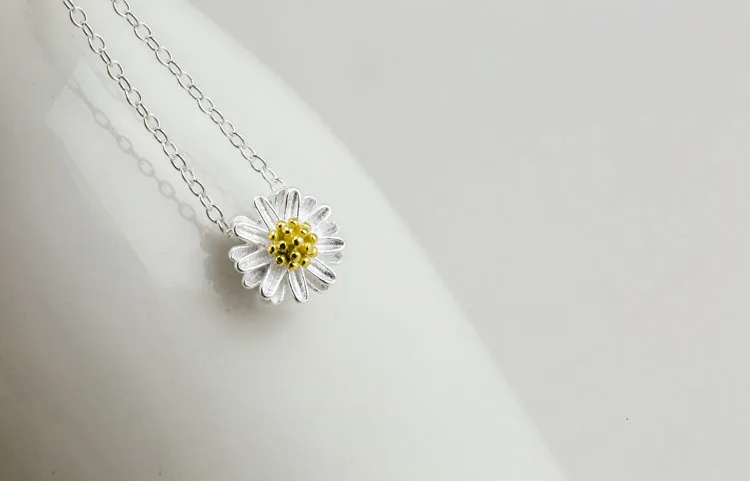 Victoria’s Vogue 925 Sterling Silver Daisy Necklaces & Pendants For Women Fashion Lady Festival Gift Sterling-Silver-Jewelry
