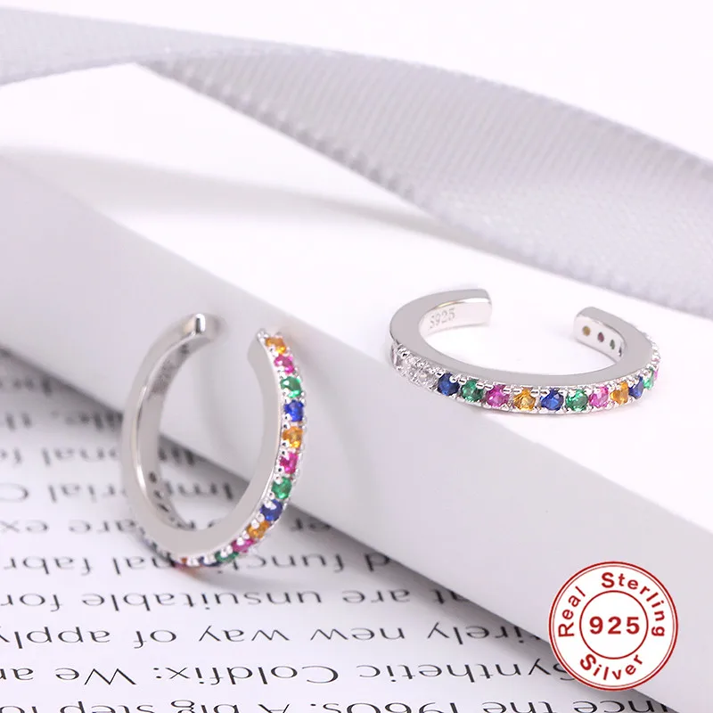 victoria’s vogue 925 Sterling Silver Double Circle Ear Cuff For Women Colorful Charming Zircon Clip On Earrings No Piercing Fine Jewelry