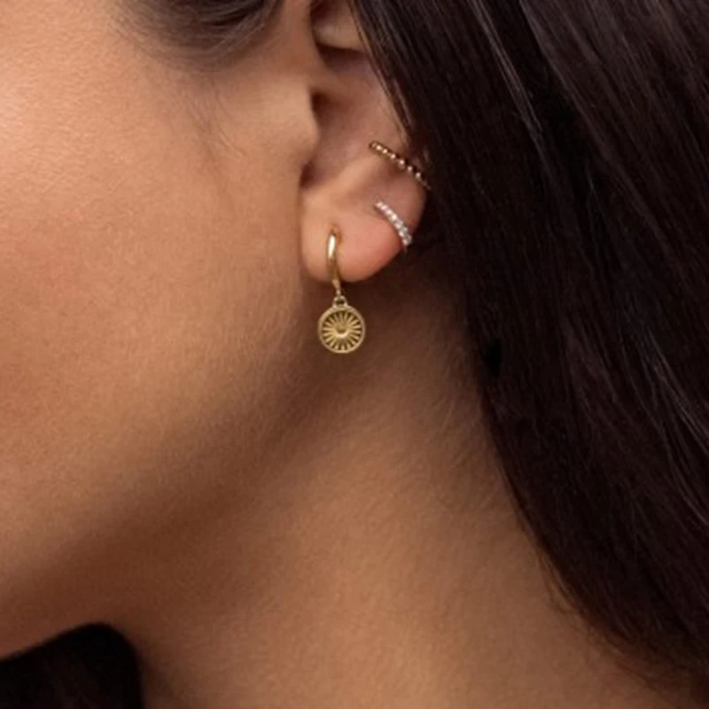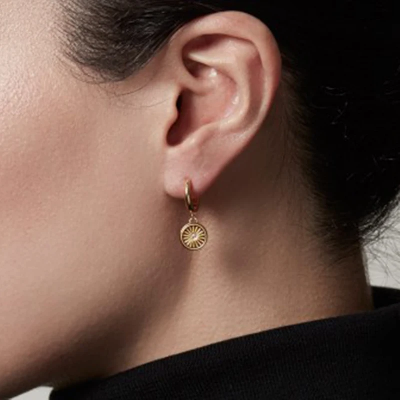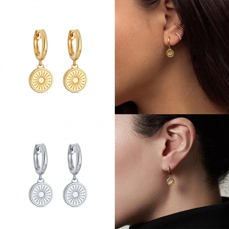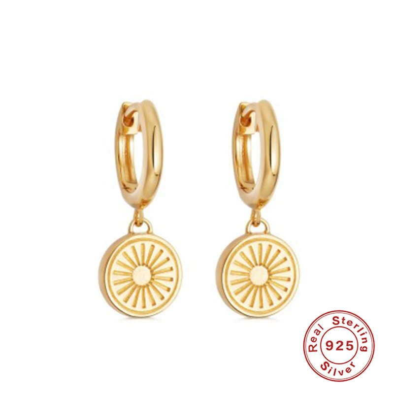 Victoria’s Vogue 925 Sterling Silver Drop Earrings With Sunlight Pattern Round Disc Circle Charm Pendant Dangle Earring For Women Jewelry