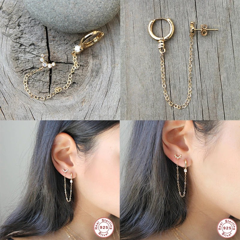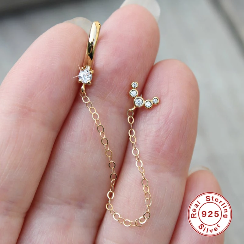 victoria’s vogue 925 Sterling Silver European Gothic Punk Handcuff Stud Earrings Chain for Women Lovers’ Engagement Anniversary Gift Jewelry