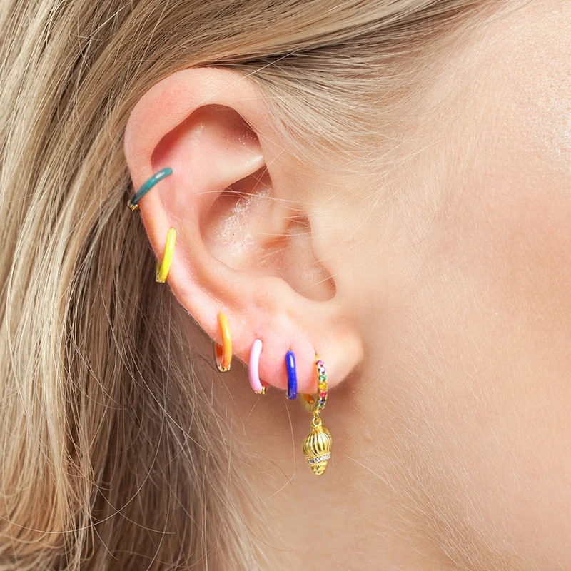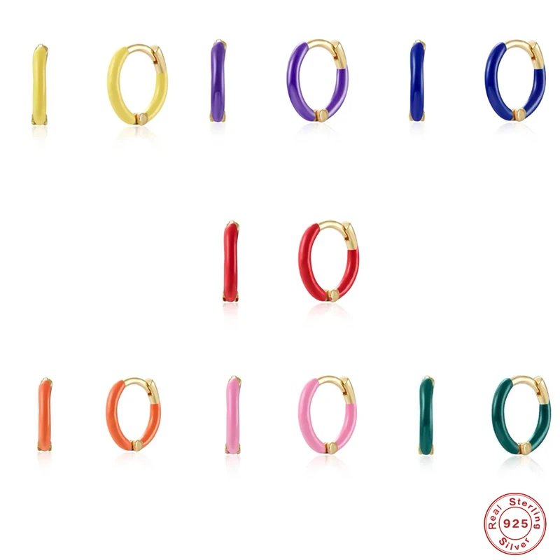 Victoria’s Vogue 925 Sterling Silver European Neon Pink Purple Enamel Hoop Earrings For Women Luxury Circle Round Earring Jewelry