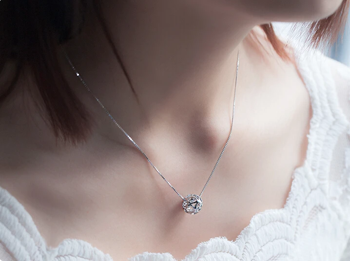 Victoria’s Vogue 925 Sterling Silver Exquisite Ball Necklaces & Pendants For Women High Quality Sterling-Silver-Jewelry Silver Ornament